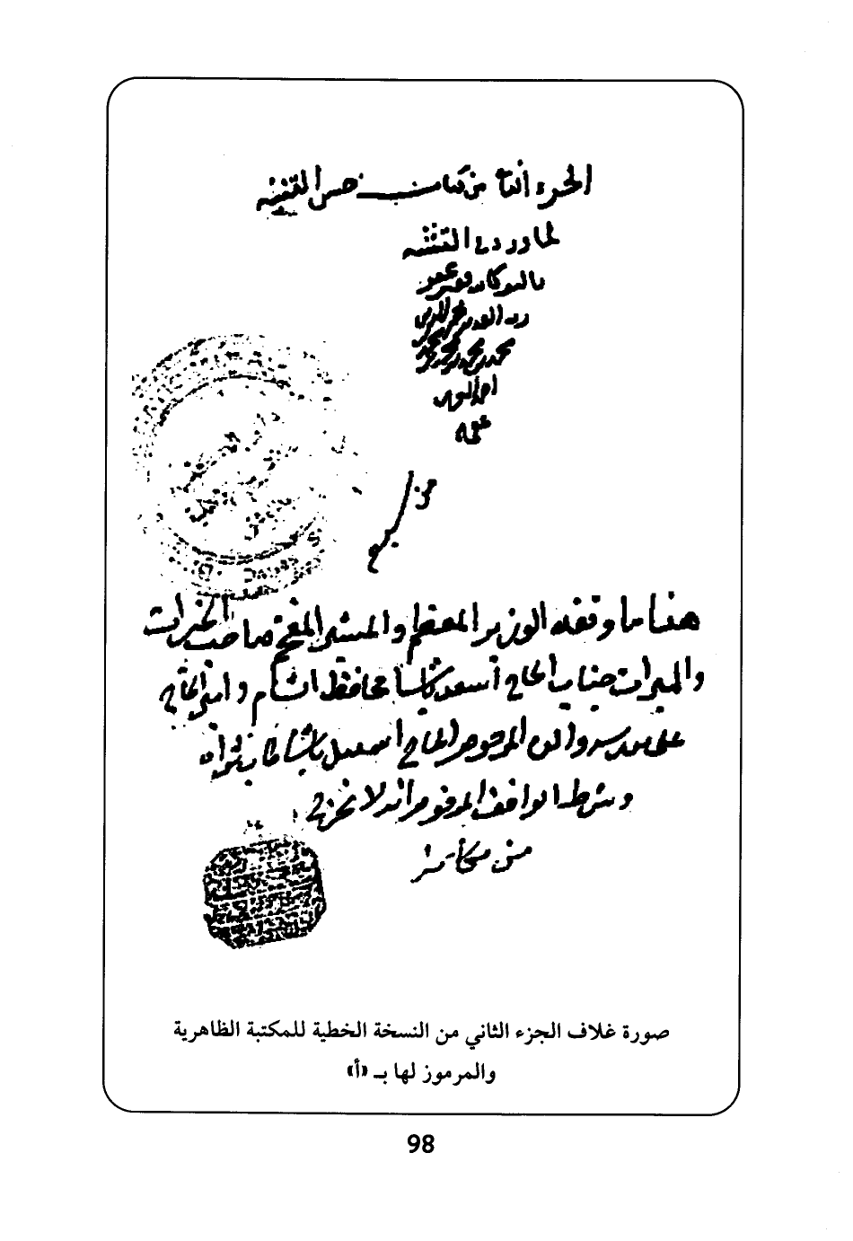 صورة غلاف الجزء الثاني من النسخة الخطية للمكتبة الظاهرية