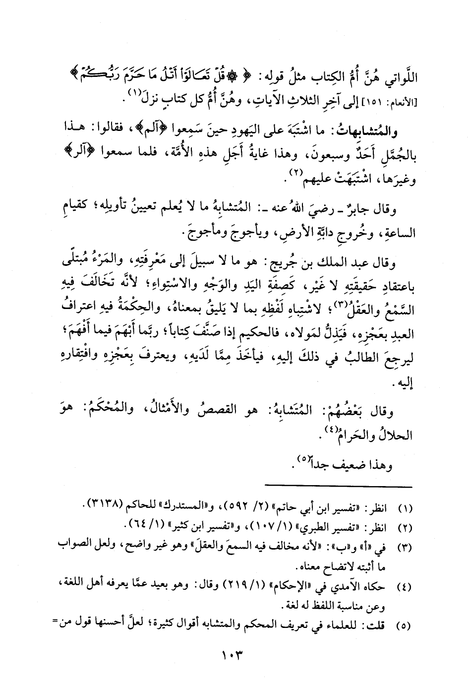 (¬5) قلت: للعلماء في تعريف المحكم والمتشابه أقوال كثيرة؛ لعل أحسنها قول من =