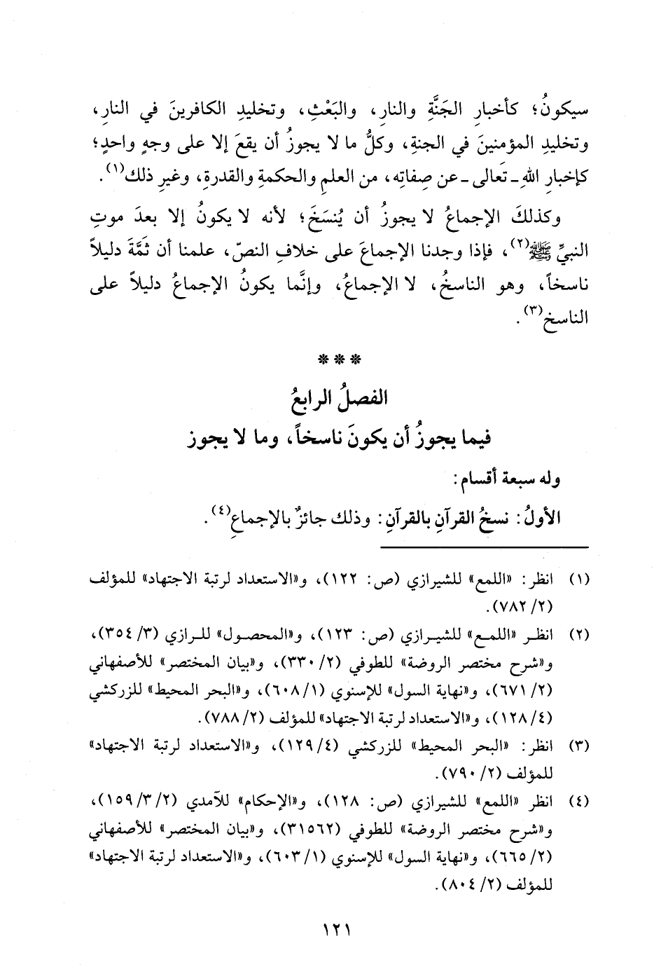 (¬4) انظر "اللمع" للشيرازي (ص: 128)، و "الإحكام" للآمدي (2/ 3/ 159)، و "شرح مختصر الروضة" للطوفي (31562)، و "بيان المختصر" للأصفهاني (2/ 665)، و "نهاية السول" للإسنوي (1/ 603)، و "الاستعداد لرتبة الاجتهاد" للمؤلف (2/ 804).