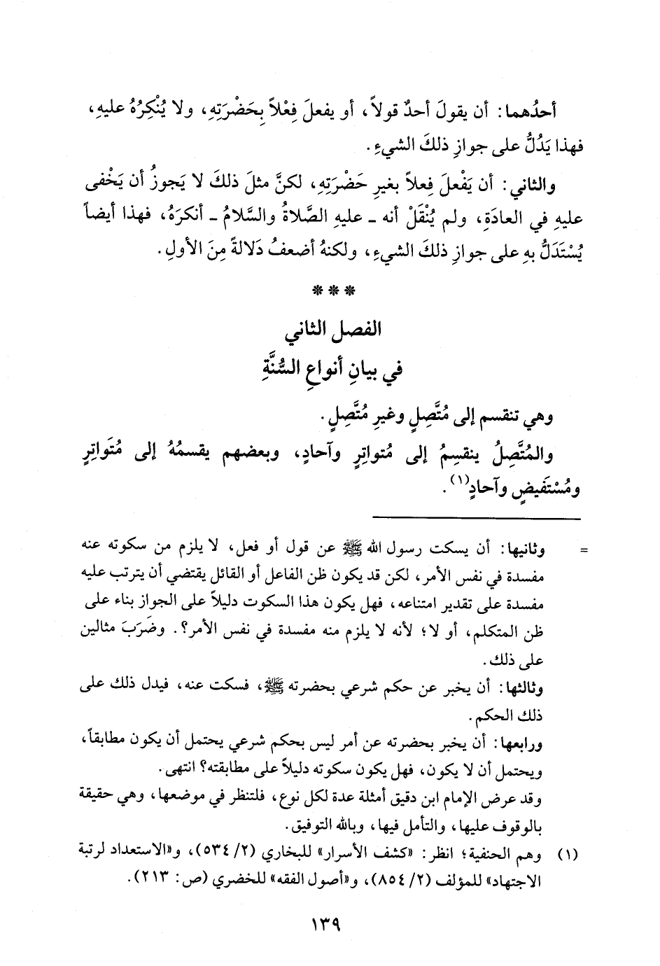 الفصل الثَّاني في بيانِ أنواعِ السُّنَّةِ
