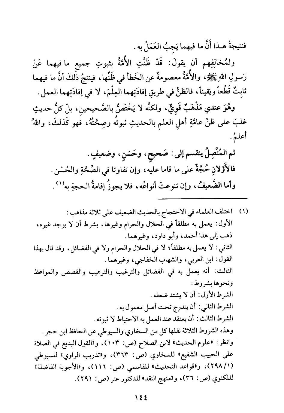 وانظر: "علوم الحديث" لابن الصلاح (ص: 103)، و"القول البديع في الصَّلاة على الحبيب الشفيع" للسخاوي (ص: 363)، و "تدريب الراوي" للسيوطي (1/ 298)، و "قواعد التحديث" للقاسمي (ص: 116)، و "الأجوبة الفاضلة" للكنوي (ص: 36)، و "منهج النقد" للدكتور عتر (ص: 291).