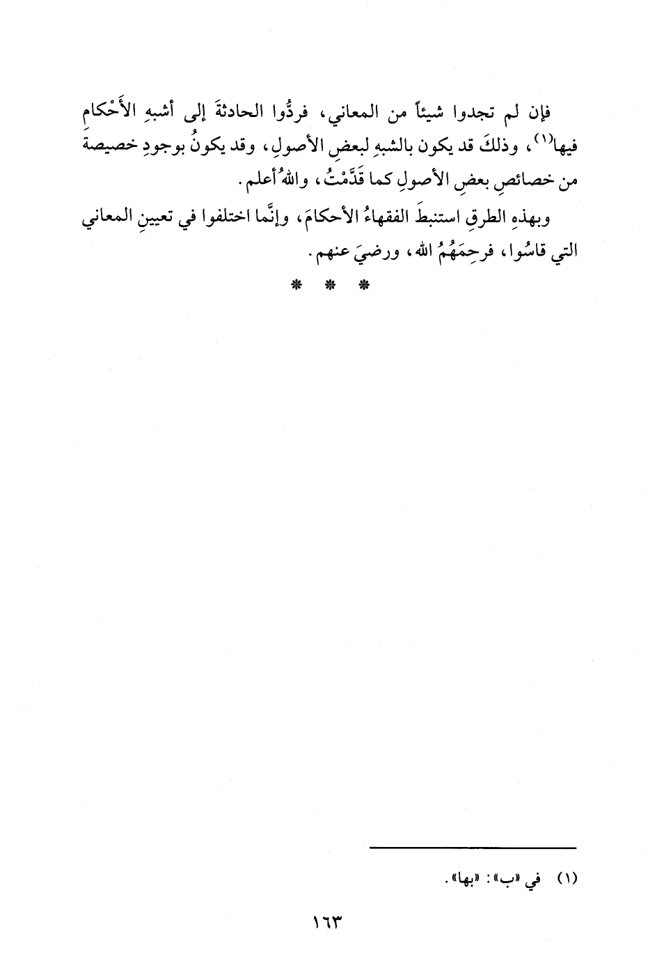 فإن لم تجدوا شيئاً من المعاني، فردُّوا الحادثةَ إلى أشبهِ الأَحْكامِ فيها (¬1)، وذلكَ قد يكون بالشبهِ لبعضِ الأصولِ، وقد يكونُ بوجودِ خصيصة من خصائصِ بعضِ الأصولِ كما قَدَّمْتُ، واللهُ أعلم.