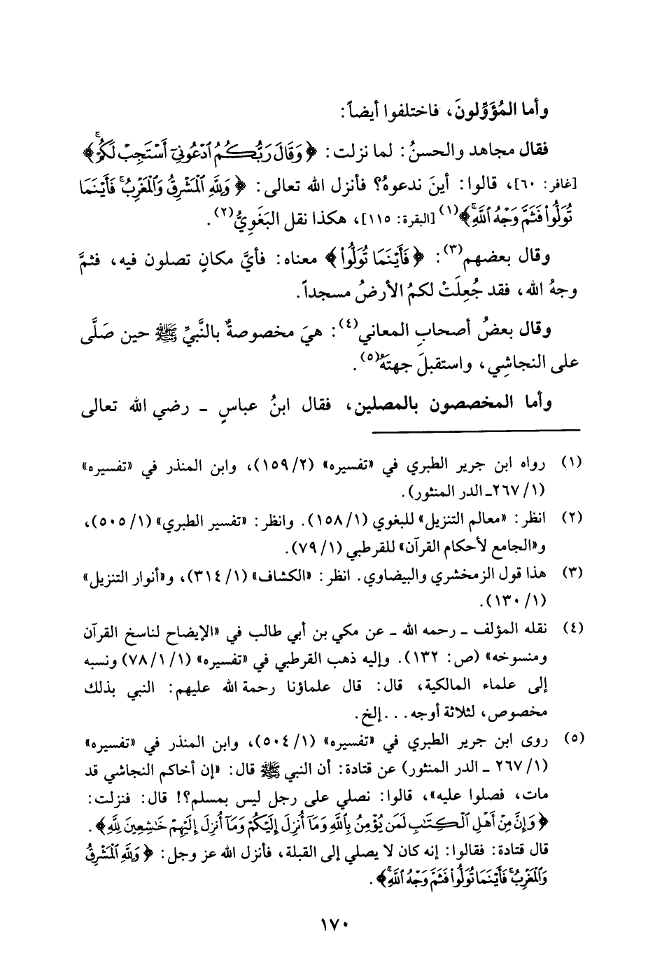 (¬5) روى ابن جرير الطبري في "تفسيره" (1/ 504)، وابن المنذر في "تفسيره" (1/ 267 - الدر المنثور) عن قتادة: أن النبي - صلى الله عليه وسلم - قال: "إن أخاكم النجاشي قد مات، فصلوا عليه"، قالوا: نصلي على رجل ليس بمسلم؟! قال: فنزلت: {وَإِنَّ مِنْ أَهْلِ الْكِتَابِ لَمَنْ يُؤْمِنُ بِاللَّهِ وَمَا أُنْزِلَ إِلَيْكُمْ وَمَا أُنْزِلَ إِلَيْهِمْ خَاشِعِينَ لِلَّهِ}. قال قتادة: فقالوا: إنه كان لا يصلي إلى القبلة، فأنزل الله عز وجل: {وَلِلَّهِ الْمَشْرِقُ وَالْمَغْرِبُ فَأَيْنَمَا تُوَلُّوا فَثَمَّ وَجْهُ}.