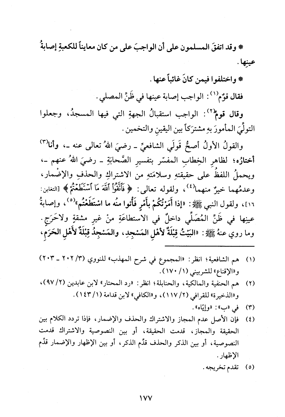 * - وقد اتفقَ المسلمون على أن الواجبَ على من كان معاينًا للكعبةِ إصابةُ عينِها.