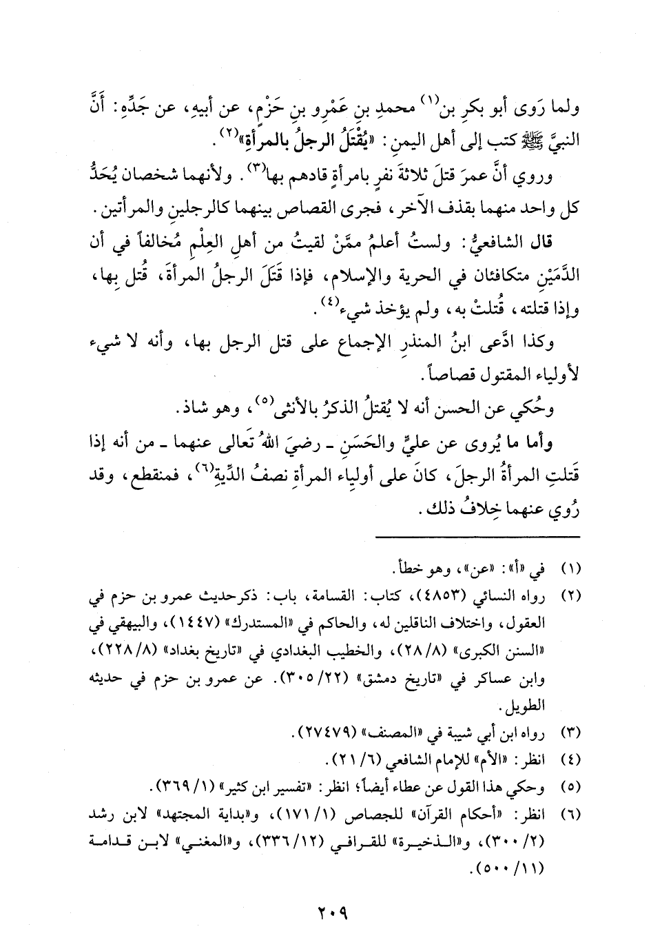 (¬2) رواه النسائي (4853)، كتاب: القسامة، باب: ذكر حديث عمرو بن حزم في العقول، واختلاف الناقلين له، والحاكم في "المستدرك" (1447)، والبيهقي في "السنن الكبرى" (8/ 28)، والخطيب البغدادي في "تاريخ بغداد" (8/ 228)، وابن عساكر في "تاريخ دمشق" (22/ 305). عن عمرو بن حزم في حديثه الطويل.