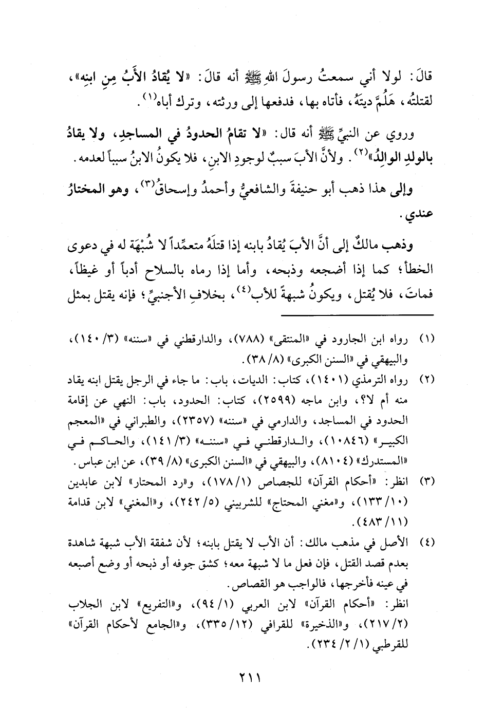 (¬2) رواه الترمذي (1401)، كتاب: الديات، باب: ما جاء في الرجل يقتل ابنه يقاد منه أم لا؟، وابن ماجه (2599)، كتاب: الحدود، باب: النهي عن إقامة الحدود في المساجد، والدارمي في "سننه" (2357)، والطبراني في "المعجم الكبير" (10846)، والدارقطني في "سننه" (3/ 141)، والحاكم في "المستدرك" (8104)، والبيهقي في "السنن الكبرى" (8/ 39)، عن ابن عباس.