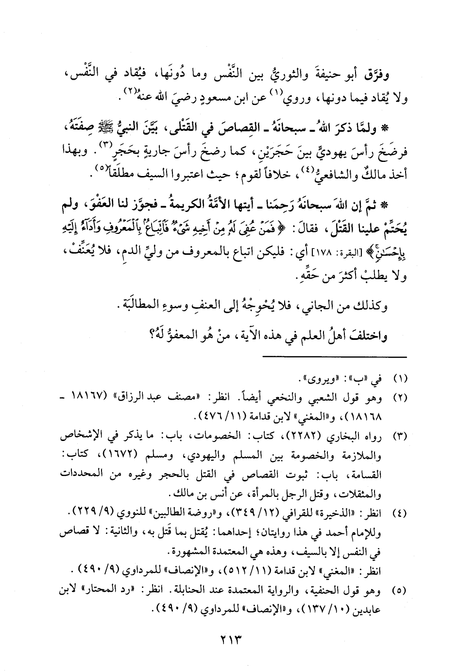 * ولمَّا ذكرَ اللهُ -سبحانَهُ- القِصاصَ في القَتْلى، بَيَّنَ النبيُّ - صلى الله عليه وسلم - صِفَتَهُ، فرضَخَ رأسَ يهوديٍّ بينَ حَجَرَيْنِ، كما رضخَ رأسَ جاريةٍ بحَجَرٍ (¬3).