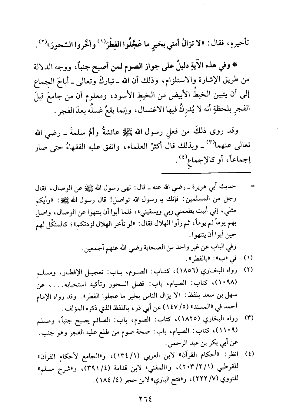 (¬4) انظر: "أحكام القرآن" لابن العربي (1/ 134)، و "الجامع لأحكام القرآن" للقرطبي (1/ 2/ 203)، و"المغني" لابن قدامة (4/ 391)، و"شرح مسلم" للنووي (7/ 222)، و"فتح الباري" لابن حجر (4/ 184).