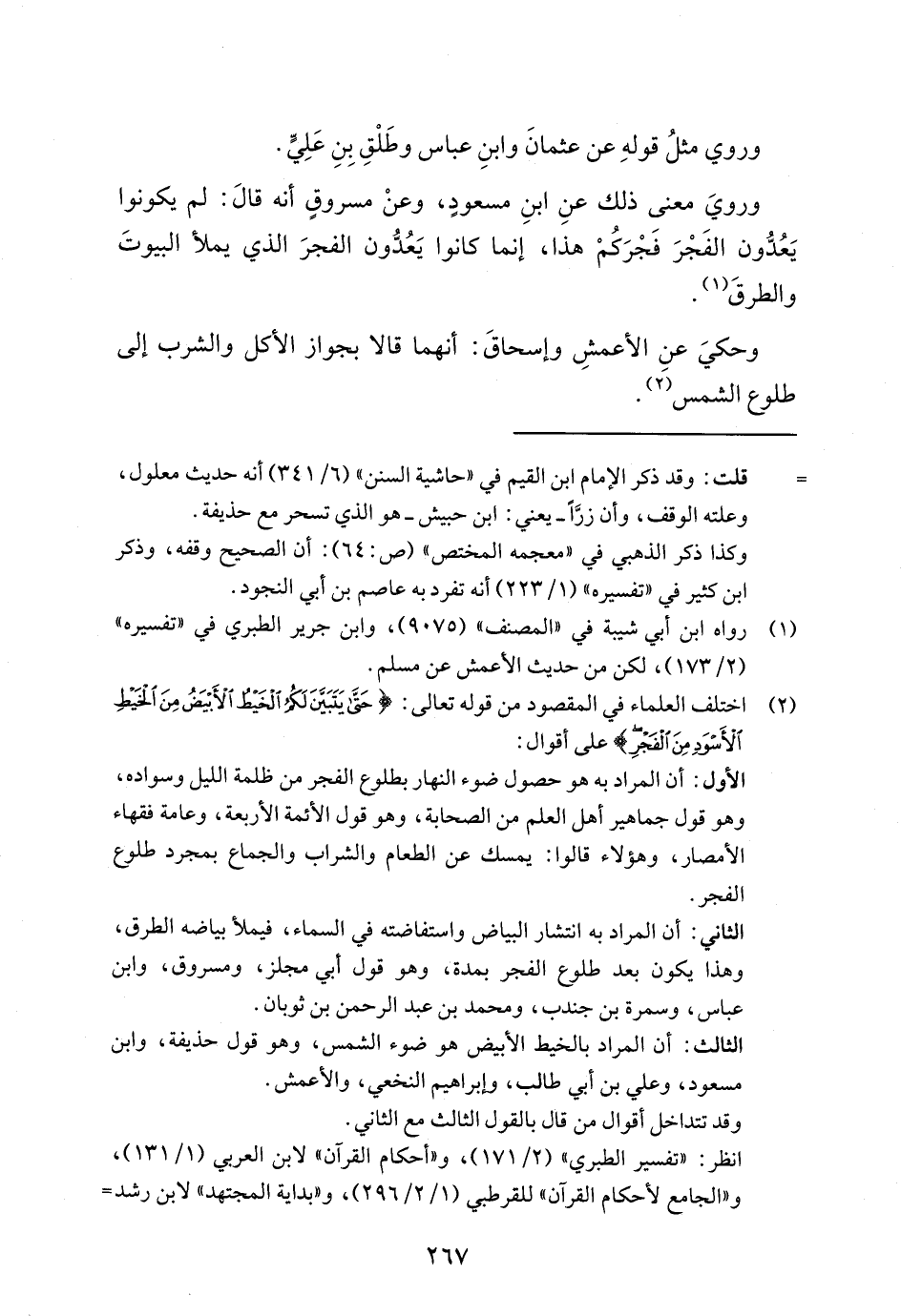 (¬2) اختلف العلماء في المقصود من قوله تعالى: {حَتَّى يَتَبَيَّنَ لَكُمُ الْخَيْطُ الْأَبْيَضُ مِنَ الْخَيْطِ الْأَسْوَدِ مِنَ الْفَجْرِ} على أقوال: