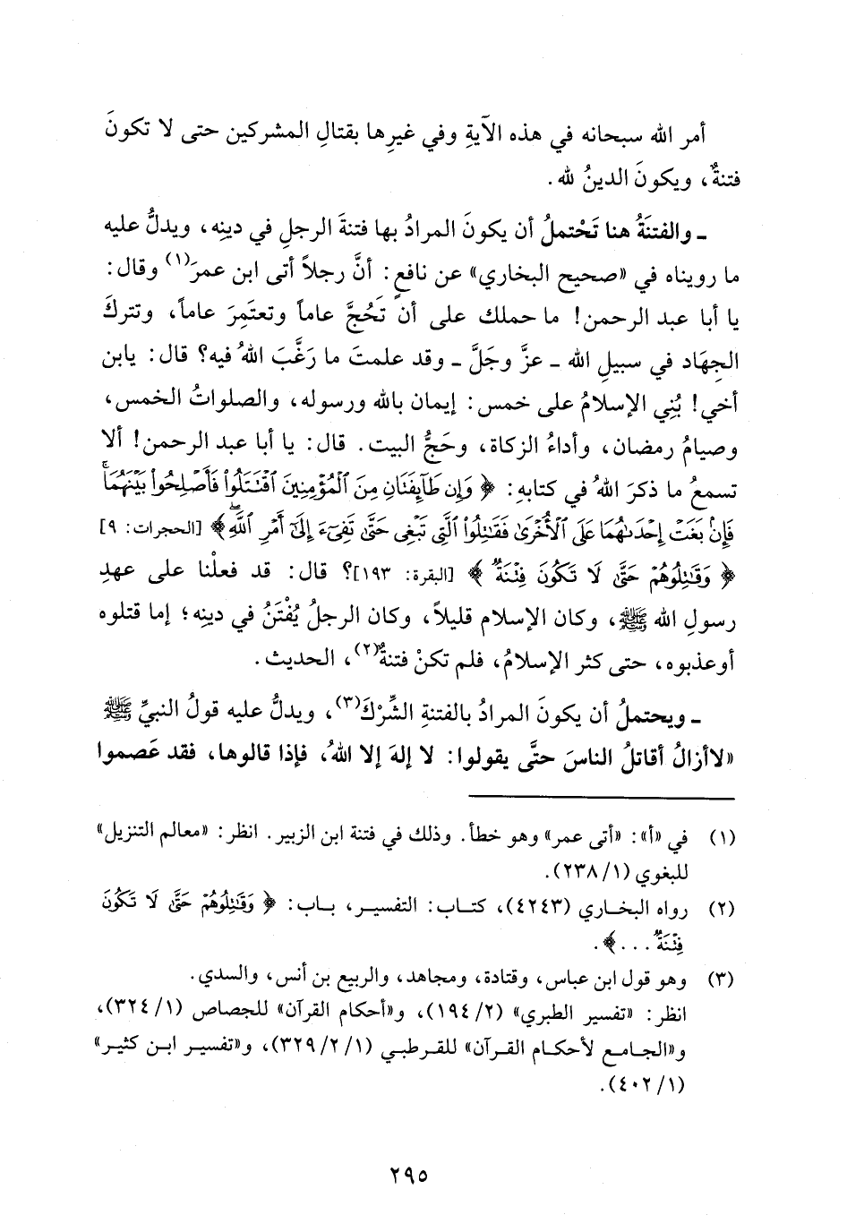 (¬2) رواه البخاري (4243)، كتاب: التفسير، باب: {وَقَاتِلُوهُمْ حَتَّى لَا تَكُونَ فِتْنَةٌ ...}.