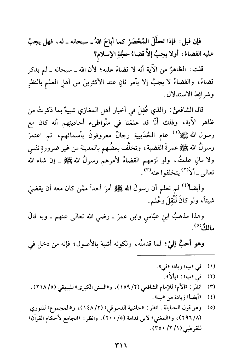 قال الشافعيُّ: والذي عُقِلَ في أخبار أهل المغازي شبيهٌ بما ذكرتُ من ظاهر الآية، وذلك أَنّا قد علمْنا في متُواطئ أحاديثِهم أنه كان مع رسول الله - صلى الله عليه وسلم - (¬1) عام الحُدَيبيةِ رجالٌ معروفونَ بأسمائهم، ثم اعتمرَ رسولُ الله - صلى الله عليه وسلم - عمرةَ القضية، وتخلَّف بعضُهم بالمدينة من غير ضرورةِ نفسٍ ولا مالٍ علمتُه، ولو لزمهم القضاءُ لأمرهم رسولُ الله - صلى الله عليه وسلم - إن شاء الله تعالى - ألاّ (¬2) يتخلفوا عنه (¬3).