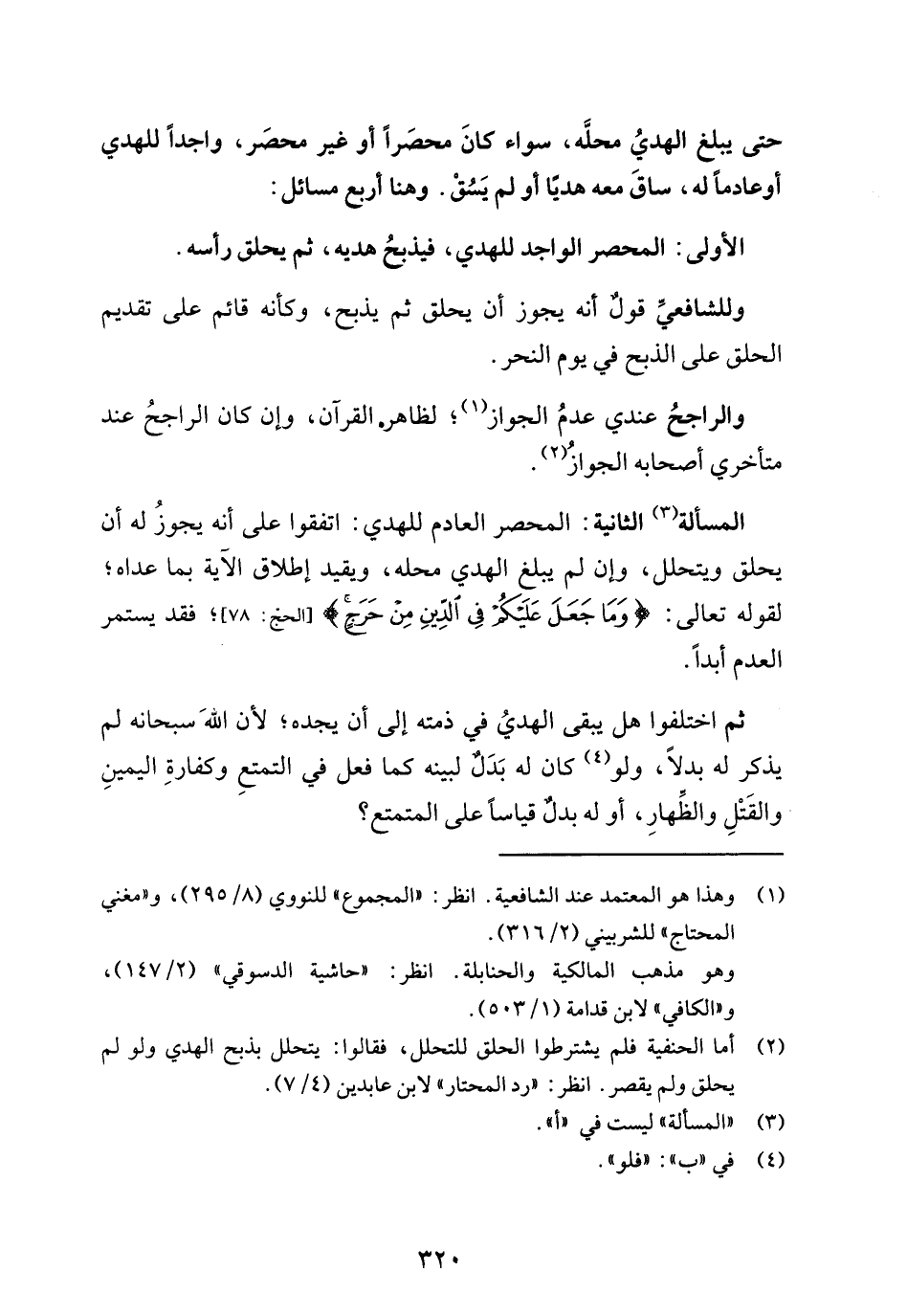 حتى يبلغ الهديُ محلَّه، سواء كانَ محصَراً أو غير محصَر، واجداً للهدي أو عادماً له، ساقَ معه هديًا أو لم يَسُقْ. وهنا أربع مسائل:
