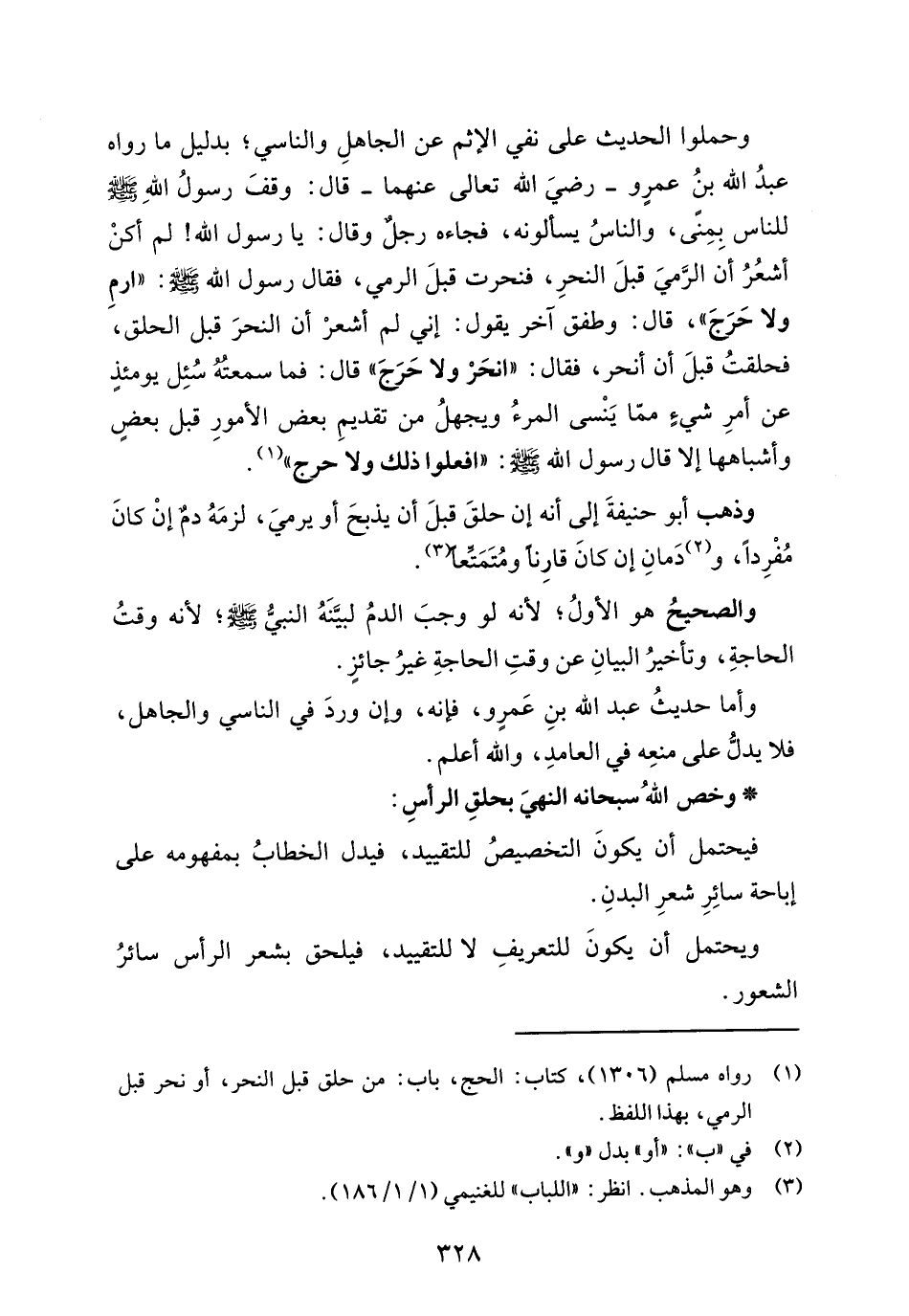 (¬1) رواه مسلم (1306)، كتاب: الحج، باب: من حلق قبل النحر، أو نحر قبل الرمي، بهذا اللفظ.