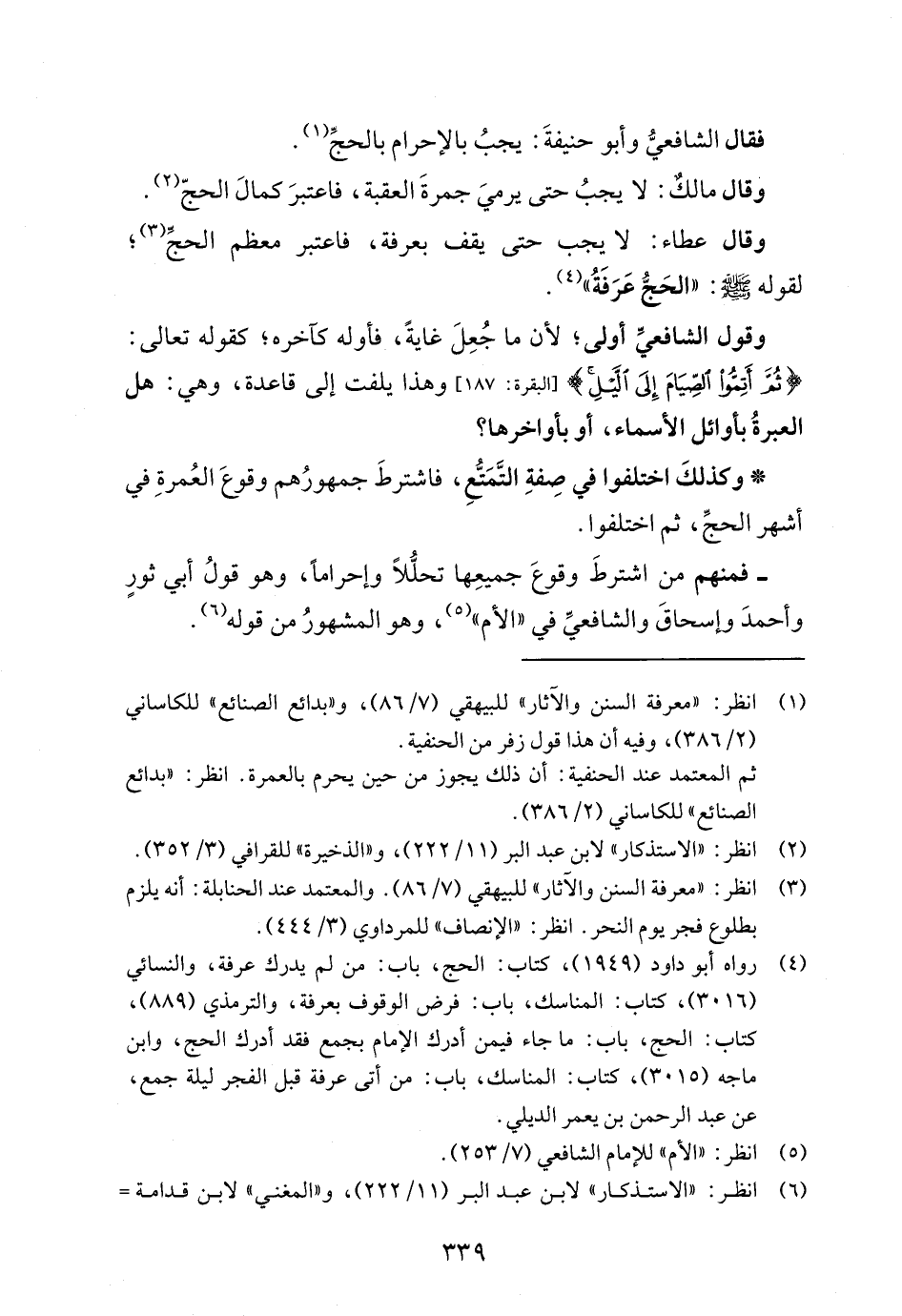 - فمنهم من اشترطَ وقوعَ جميعِها تحلُّلاً وإحراماً، وهو قولُ أبي ثورٍ وأحمدَ وإسحاقَ والشافعيِّ في "الأم" (¬5)، وهو المشهورُ من قوله (¬6).