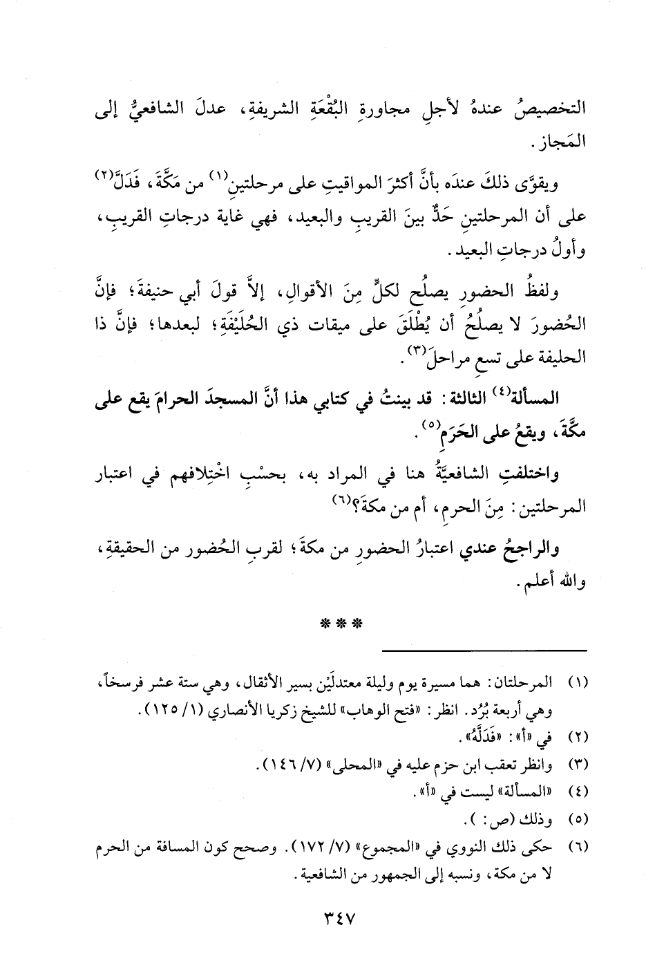 (¬6) حكى ذلك النووي في "المجموع" (7/ 172). وصحح كون المسافة من الحرم لا من مكة، ونسبه إلى الجمهور من الشافعية.