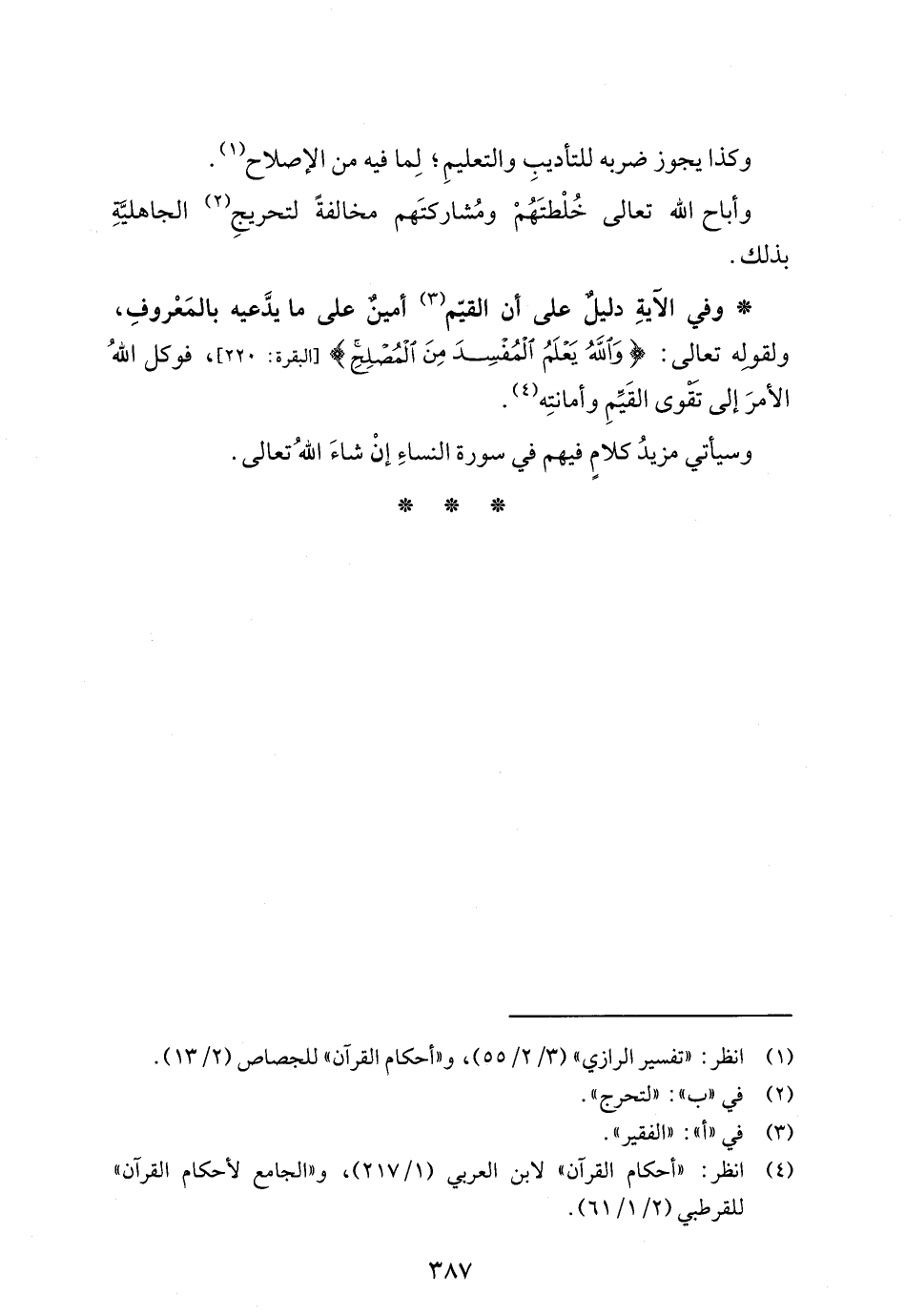 (¬1) انظر: "تفسير الرازي" (3/ 2/ 55)، و"أحكام القرآن" للجصاص (2/ 13).
