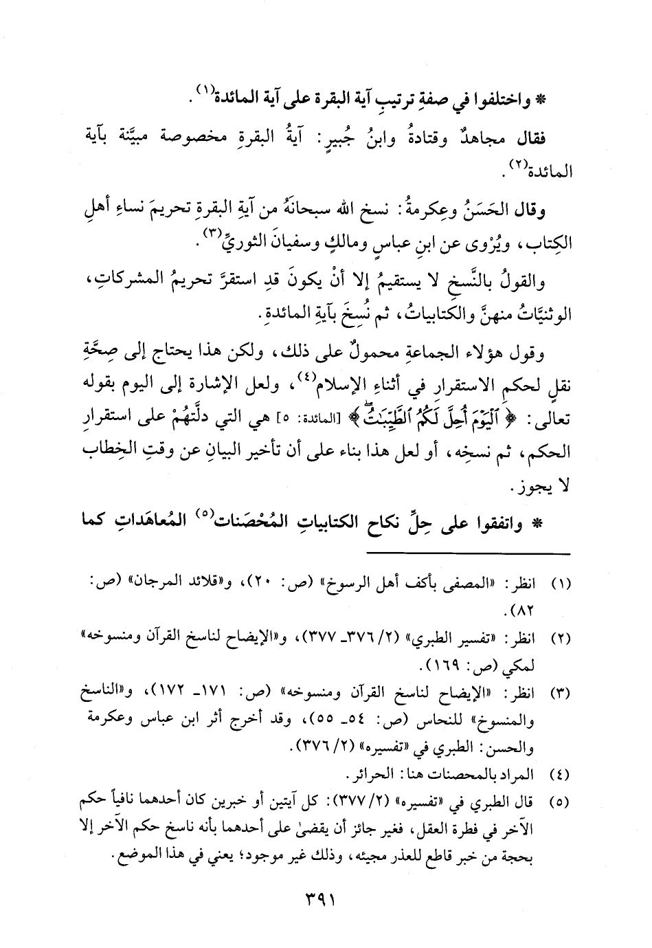 * واختلفوا في صفةِ ترتيبِ آية البقرة على آية المائدة (¬1).