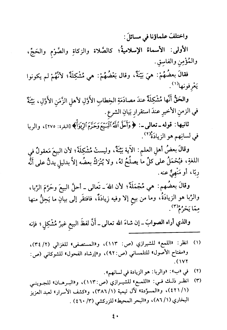 (¬3) انظر ذلك في: "اللمع" للشيرازي (ص: 113)، و"البرهان" للجويني (1/ 421)، و"المسوَّدة" لآل تيمية (1/ 386)، و"كشف الأسرار" لعبد العزيز البخاري (1/ 86)، و "البحر المحيط" للزركشي (3/ 460).