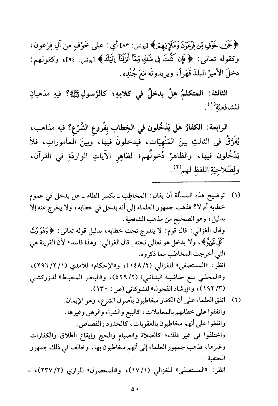 (¬1) توضيح هذه المسألة أن يقال: المخاطِب -بكسر الطاء- هل يدخل في عموم خطابه أم لا؟ فذهب جمهور العلماء إلى أنه يدخل في خطابه، ولا يخرج عنه إلا بدليل، وهو الصحيح من مذهب الشافعية.