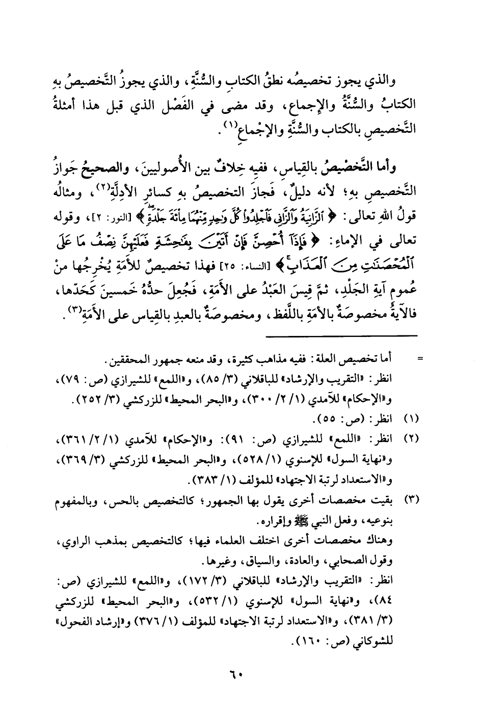 والذي يجوز تخصيصُه نطقُ الكتابِ والسُّنَةِ، والذي يجوزُ التَّخصيصُ بهِ الكتابُ والسُّنَةُ والإِجماع، وقد مضى في الفَصْل الذي قبل هذا أمثلةُ التَّخصيصِ بالكتاب والسُّنَةِ والإجْماعِ (¬1).