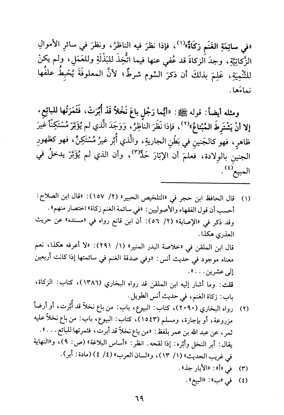 (¬1) قال الحافظ ابن حجر في "التلخيص الحبير" (2/ 157): "قال ابن الصلاح: أحسب أن قول الفقهاء والأصوليين: "في سائمة الغنم زكاة" اختصار منهم".