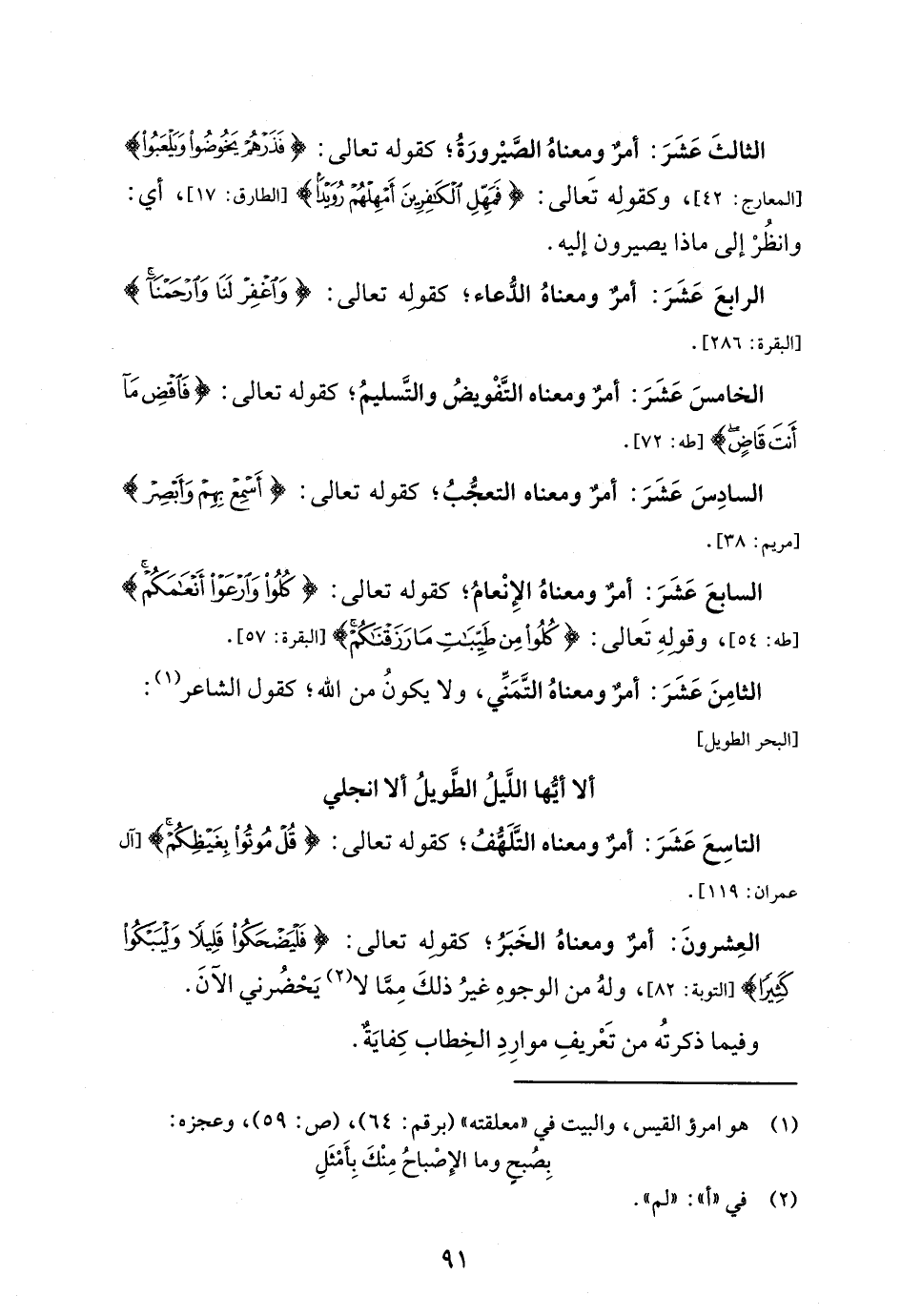 الثامِنَ عَشَرَ: أمرٌ ومعناهُ التَّمَنِّي، ولا يكونُ من الله؛ يقول الشاعر (¬1): [البحر الطويل]