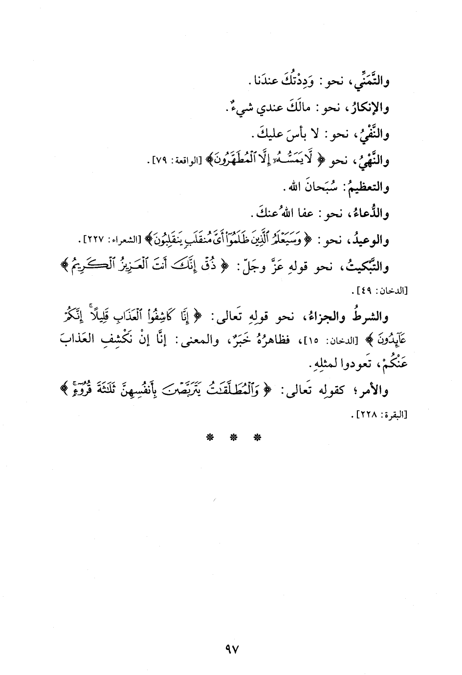 والنَّفْيُ، نحو: لا بأسَ عليكَ.