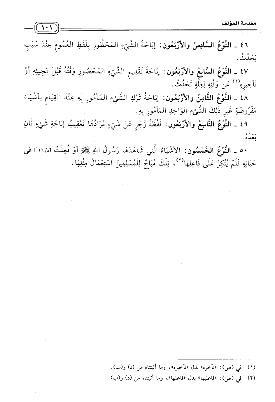 ٥٠ - النوع الخمسون: الأشياء التي شاهدها رسول الله صلى الله عليه وسلم أو فعلت في حياته فلم ينكر على فاعلها تلك مباح للمسلمين استعمال مثلها.