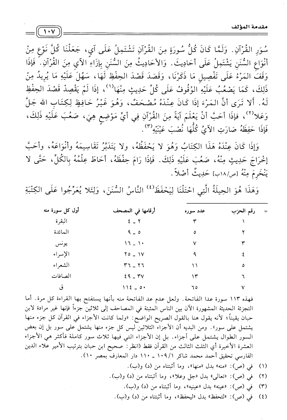 سور القرآن. ولما كان كل سورة من القرآن تشتمل على آي، جعلنا كل نوع من أنواع السنن يشتمل على أحاديث. والأحاديث من السنن بإزاء الآي من القرآن.