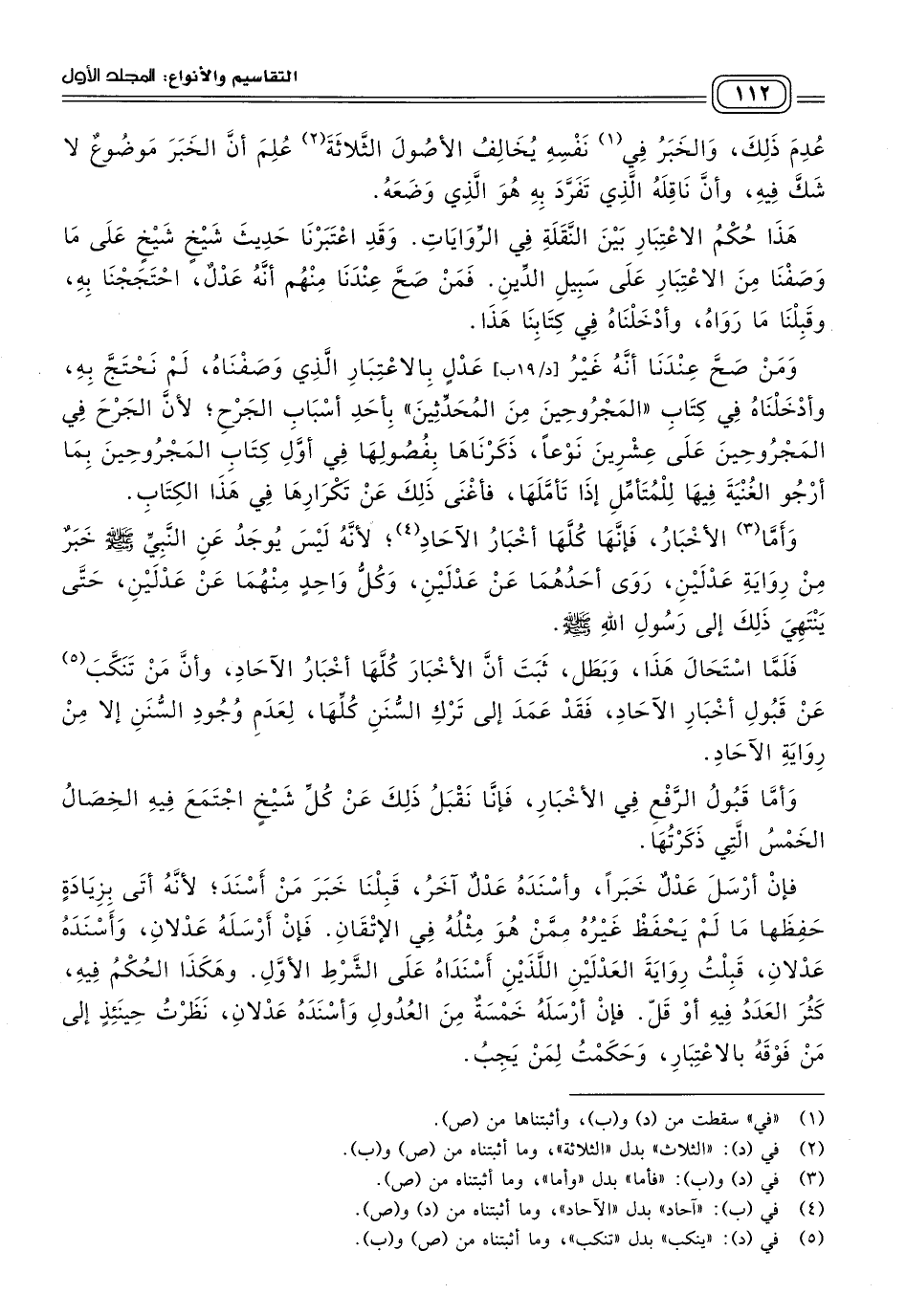 فلما استحال هذا وبطل ثبت أن الأخبار كلها أخبار الآحاد وأن من تنكب عن قبول أخبار الآحاد فقد عمد إلى ترك السنن كلها لعدم وجود السنن إلا من رواية الآحاد.