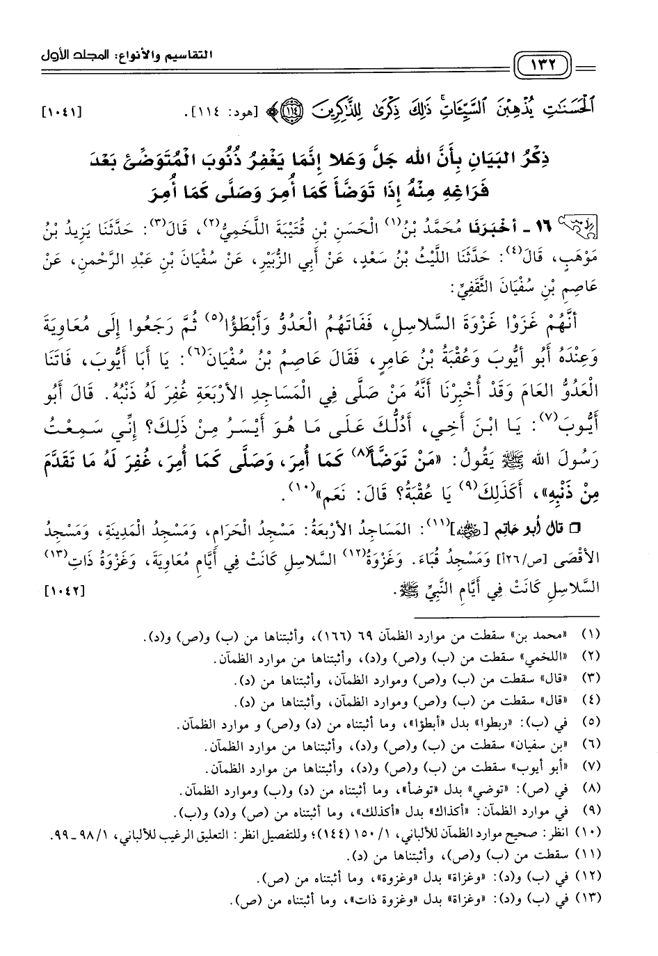 قَالَ أَبُو حَاتِمٍ رَضِيَ اللهُ عَنْهُ: الْمَسَاجِدُ الأَرْبَعَةُ: مَسْجِدُ الْحَرَامِ، وَمَسْجِدُ الْمَدِينَةِ، وَمَسْجِدُ الأَقْصَى، وَمَسْجِدُ قُبَاءَ. وَغَزْوَةُ السَّلَاسِلِ كَانَتْ فِي أَيَّامِ مُعَاوِيَةَ، وَغَزْوَةُ ذات السَّلَاسِلِ كَانَتْ فِي أَيَّامِ النَّبِيِّ صَلى الله عَلَيه وسَلم. [١٠٤٢]
