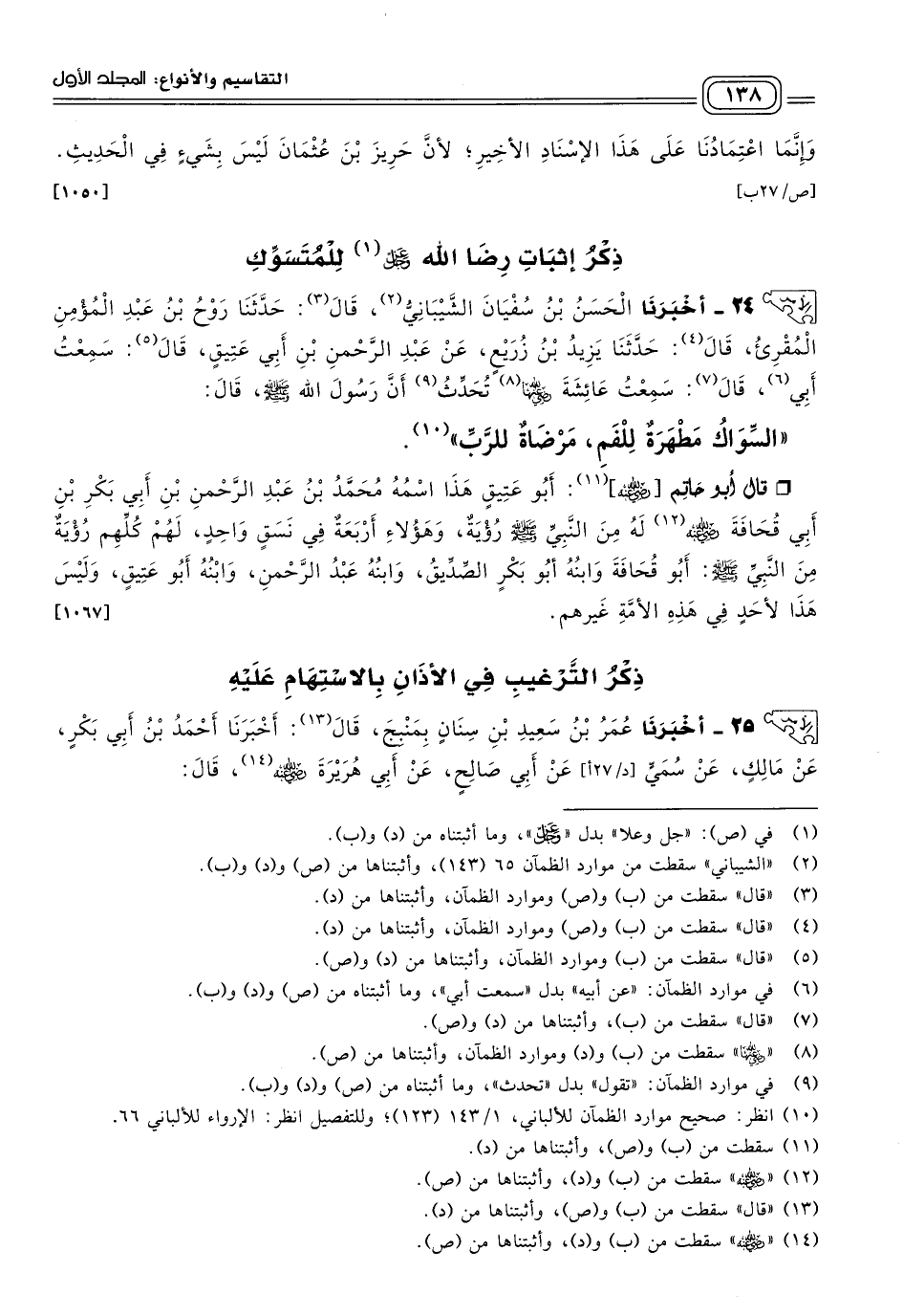 ذِكْرُ إِثْبَاتِ رِضَا اللهِ عَزَّ وَجَلَّ لِلْمُتَسَوِّكِ.