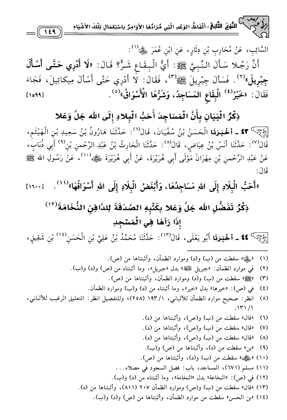 - ذِكْرُ الْبَيَانِ بِأَنَّ الْمَسَاجِدَ أَحَبُّ الْبِلَادِ إِلَى اللهِ جَلَّ وَعَلَا.
