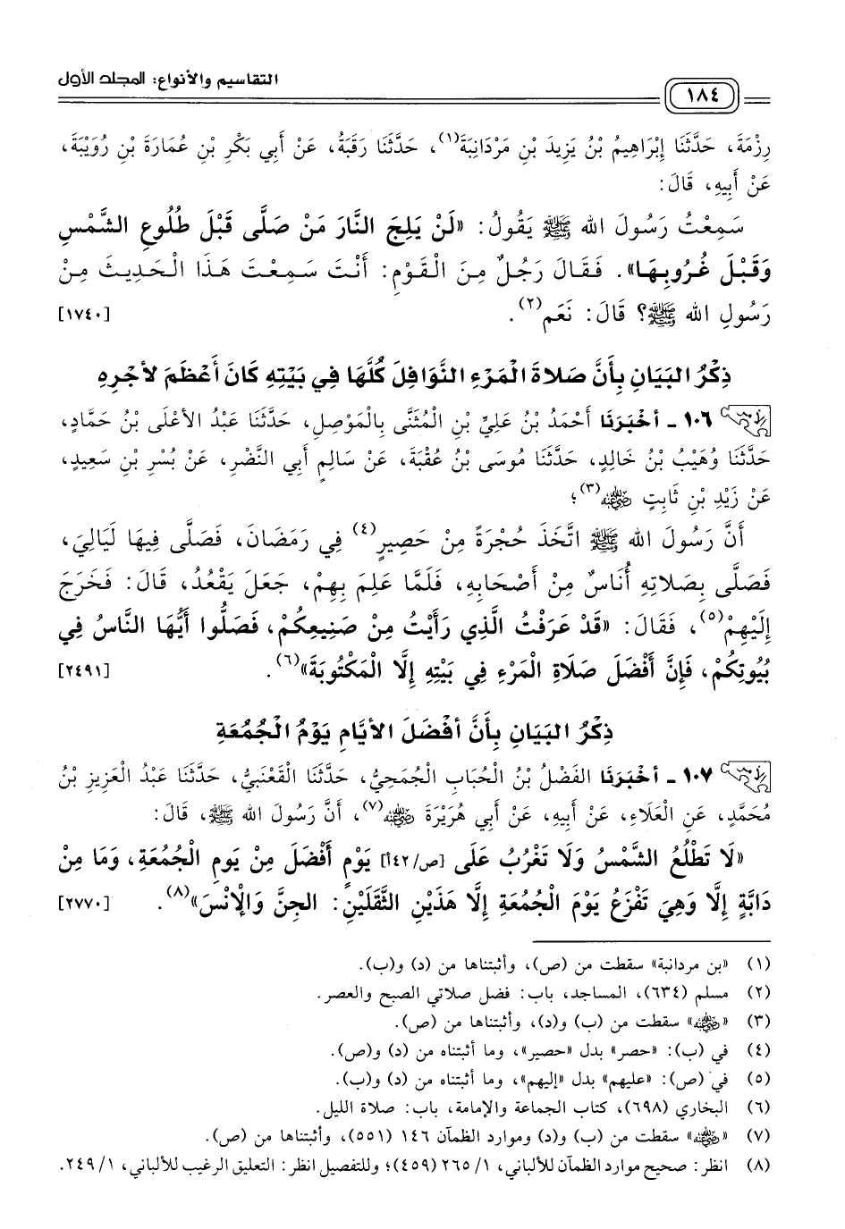 ١٠٦ - أَخبَرنا أَحْمَدُ بْنُ عَلِيِّ بْنِ الْمُثَنَّى بِالْمَوْصِلِ، حَدثنا عَبْدُ الأَعْلَى بْنُ حَمَّادٍ، حَدثنا وُهَيْبُ بْنُ خَالِدٍ، حَدثنا مُوسَى بْنُ عُقْبَةَ، عَنْ سَالِمٍ أَبِي النَّضْرِ، عَنْ بُسْرِ بْنِ سَعِيدٍ، عَنْ زَيْدِ بْنِ ثَابِتٍ رَضِيَ اللهُ عَنْهُ،