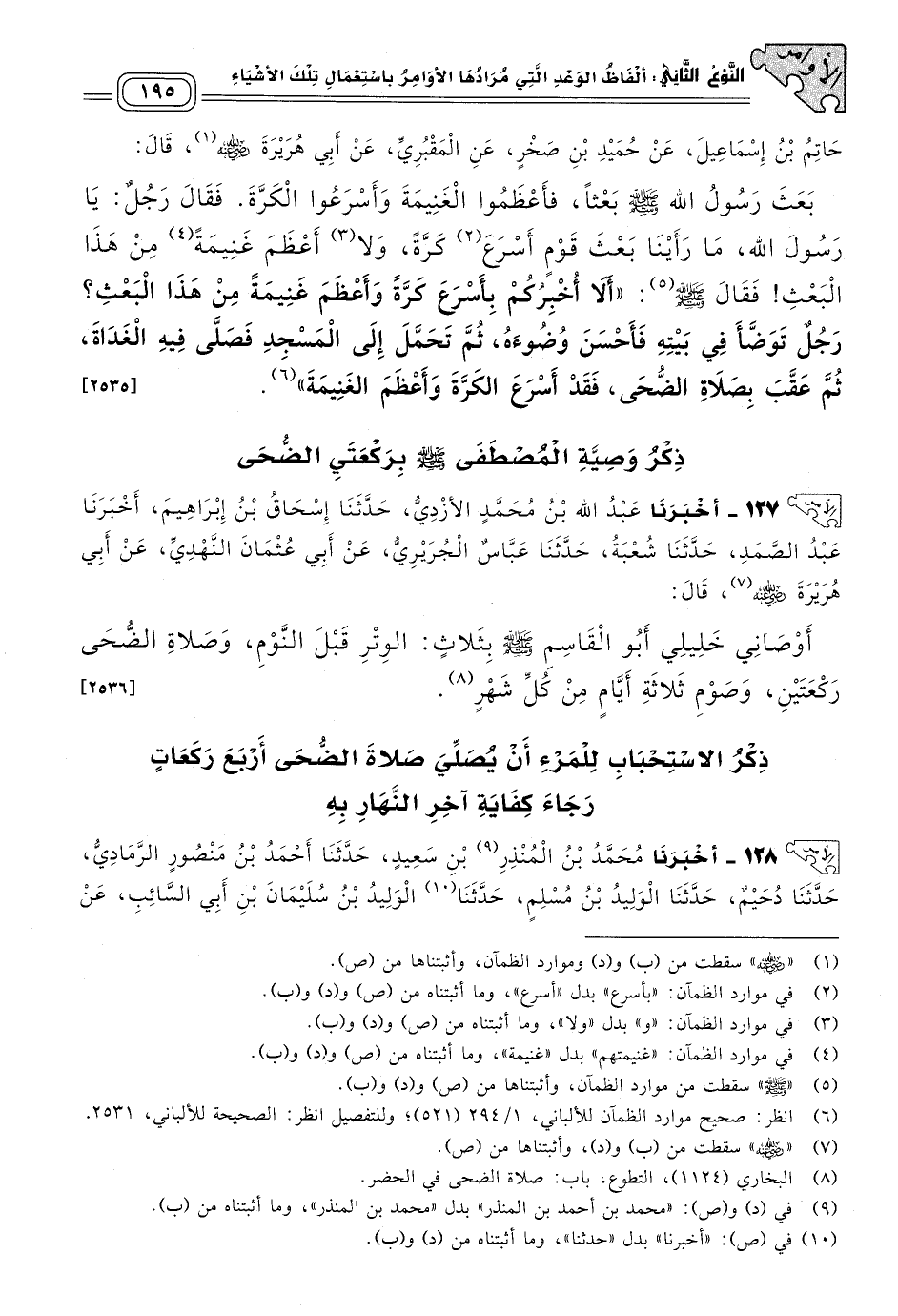 ذِكْرُ وَصِيَّةِ الْمُصْطَفَى صَلى الله عَلَيه وسَلم بِرَكْعَتَيِ الضُّحَى.