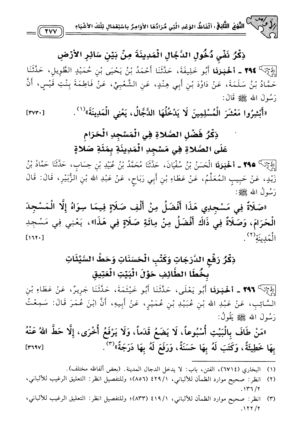 ٢٩٤ - أَخبَرنا أَبُو خَلِيفَةَ، حَدثنا أَحْمَدُ بْنُ يَحْيَى بْنِ حُمَيْدٍ الطَّوِيلُ، حَدثنا حَمَّادُ بْنُ سَلَمَةَ، عَنْ دَاوُدَ بْنِ أَبِي هِنْدٍ، عَنِ الشَّعْبِيِّ، عَنْ فَاطِمَةَ بِنْتِ قَيْسٍ، أَنَّ رَسُولَ اللهِ صَلى الله عَلَيه وسَلم قَالَ: "أَبْشِرُوا مَعْشَرَ الْمُسْلِمِينَ، لَا يَدْخُلُهَا الدَّجَّالُ، يَعْنِي الْمَدِينَةَ". [٣٧٣٠]