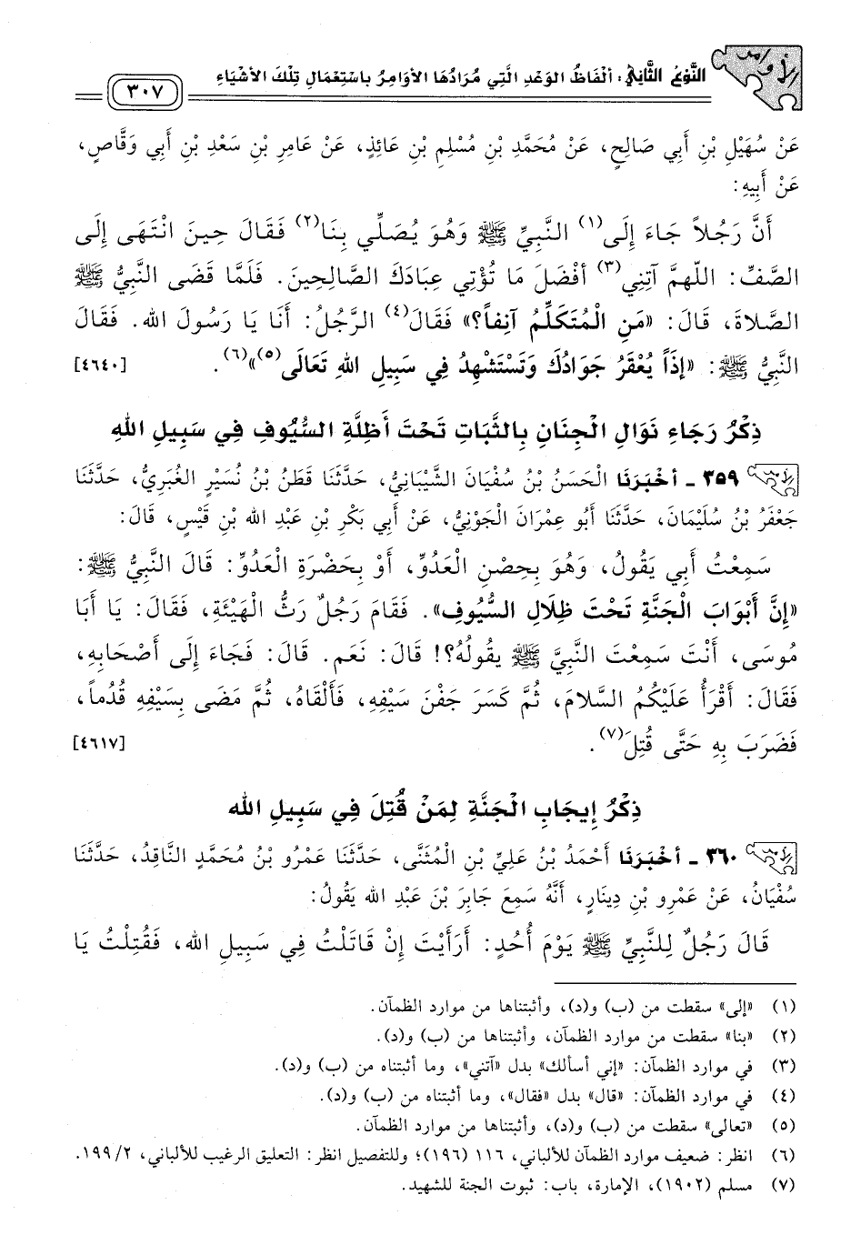 ذِكْرُ رَجَاءِ نَوَالِ الْجِنَّانِ بِالثَّبَاتِ تَحْتَ أَظِلَّةِ السُّيُوفِ فِي سَبِيلِ اللهِ.