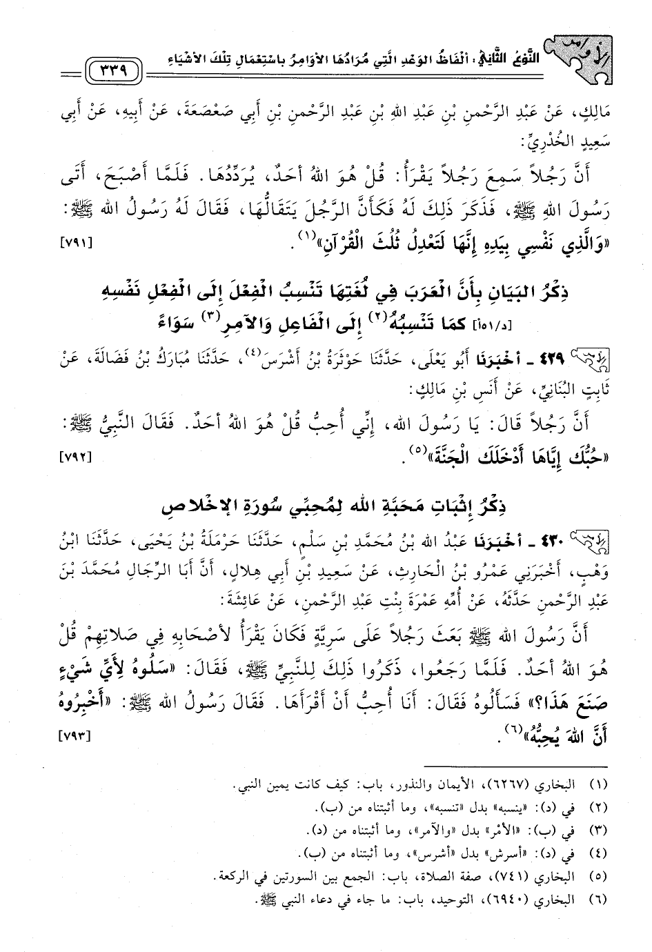 ذِكْرُ إِثْبَاتِ مَحَبَّةِ اللهِ لِمُحِبِّي سُورَةِ الإِخْلَاصِ.