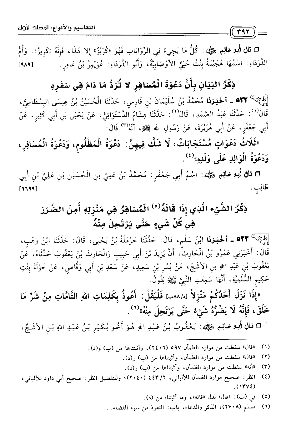 ذِكْرُ الْبَيَانِ بِأَنَّ دَعْوَةَ الْمُسَافِرِ لَا تُرَدُّ مَا دَامَ فِي سَفَرِهِ.