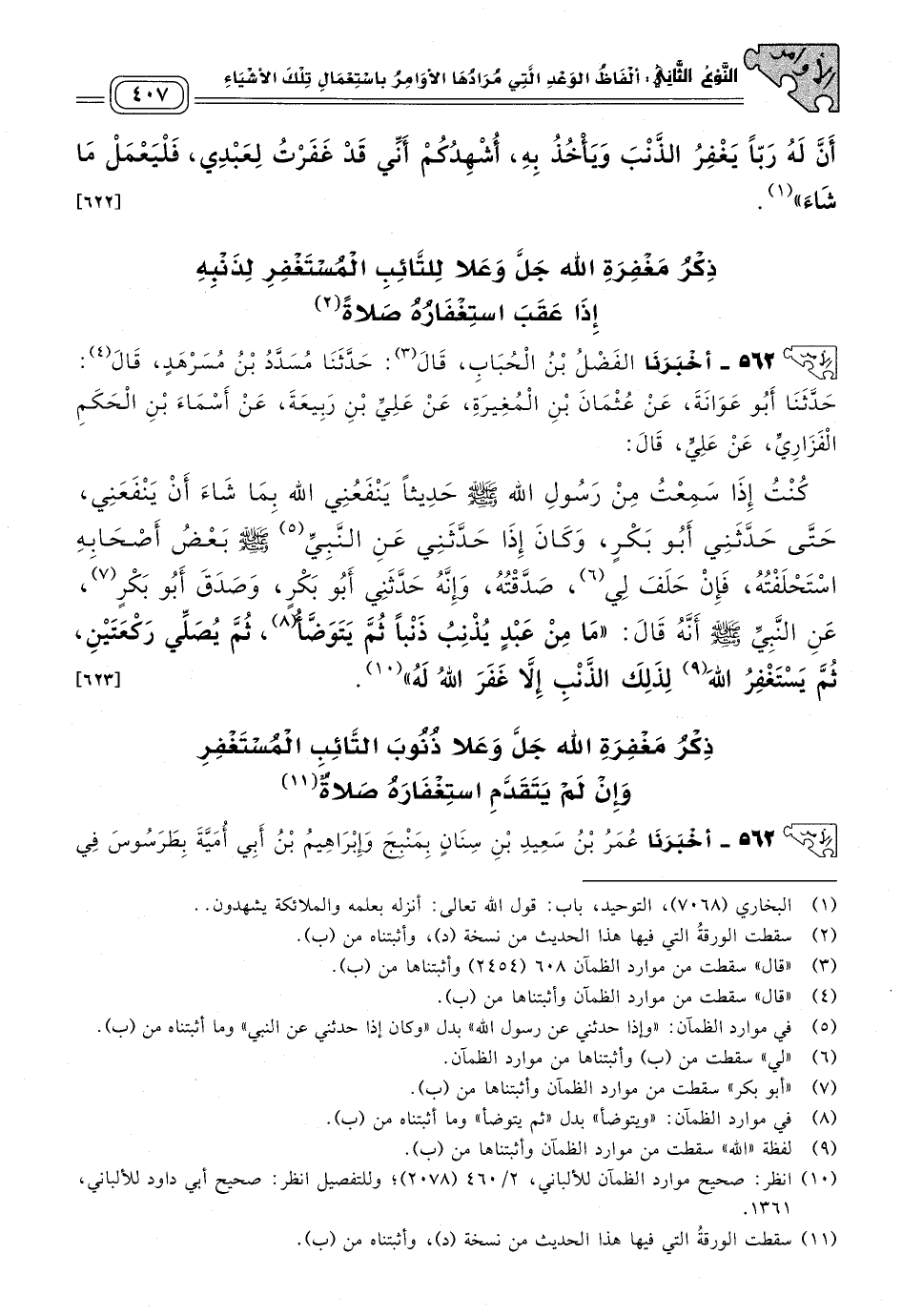 (*) خطأ ترقيم: (٥٦٢) تكرر في أربع أحاديث متتالية.