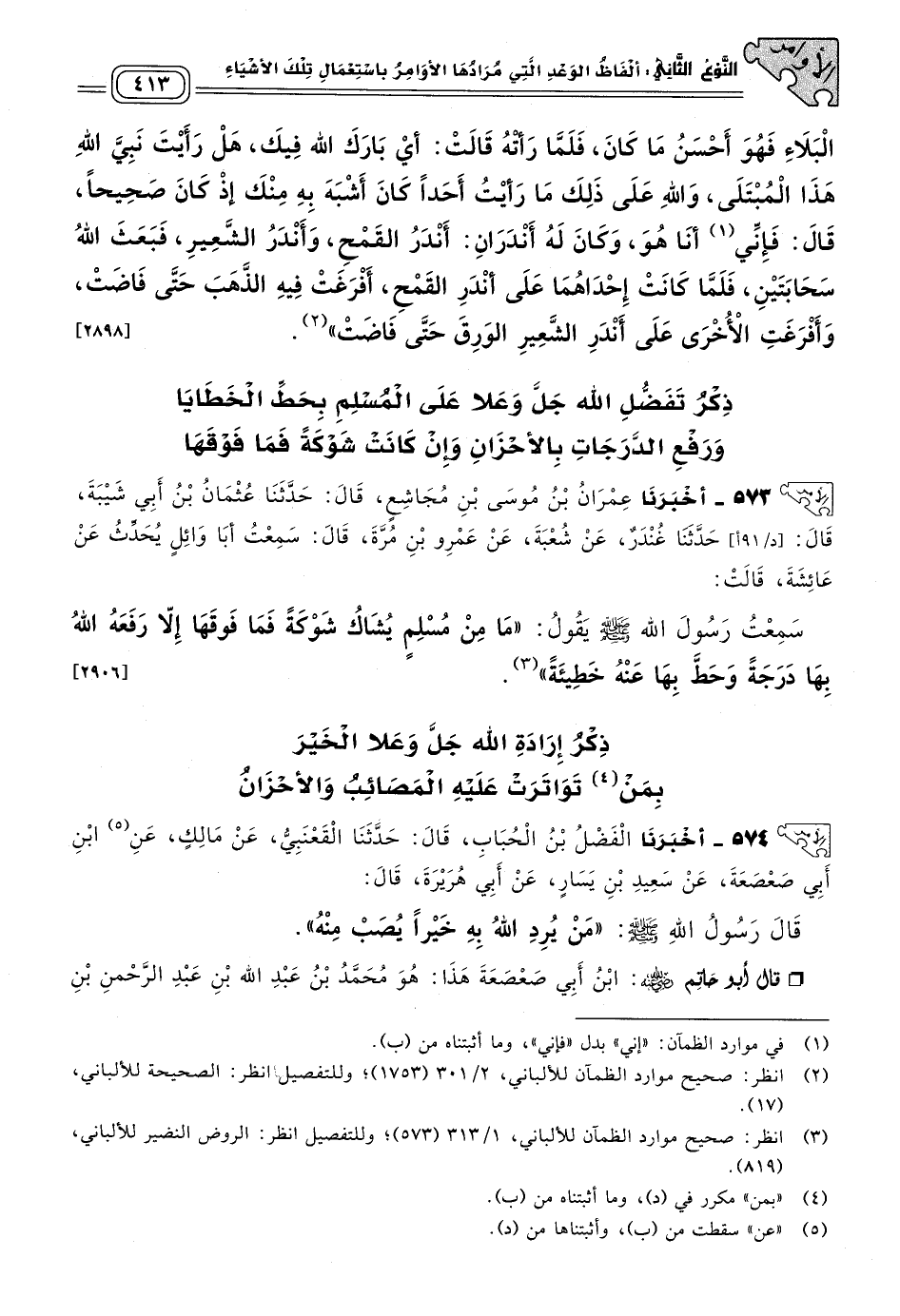 ذِكْرُ إِرَادَةِ اللهِ جَلَّ وَعَلَا الْخَيْرَ بِمَنْ تَوَاتَرَتْ عَلَيْهِ الْمَصَائِبُ وَالأَحْزَانُ.