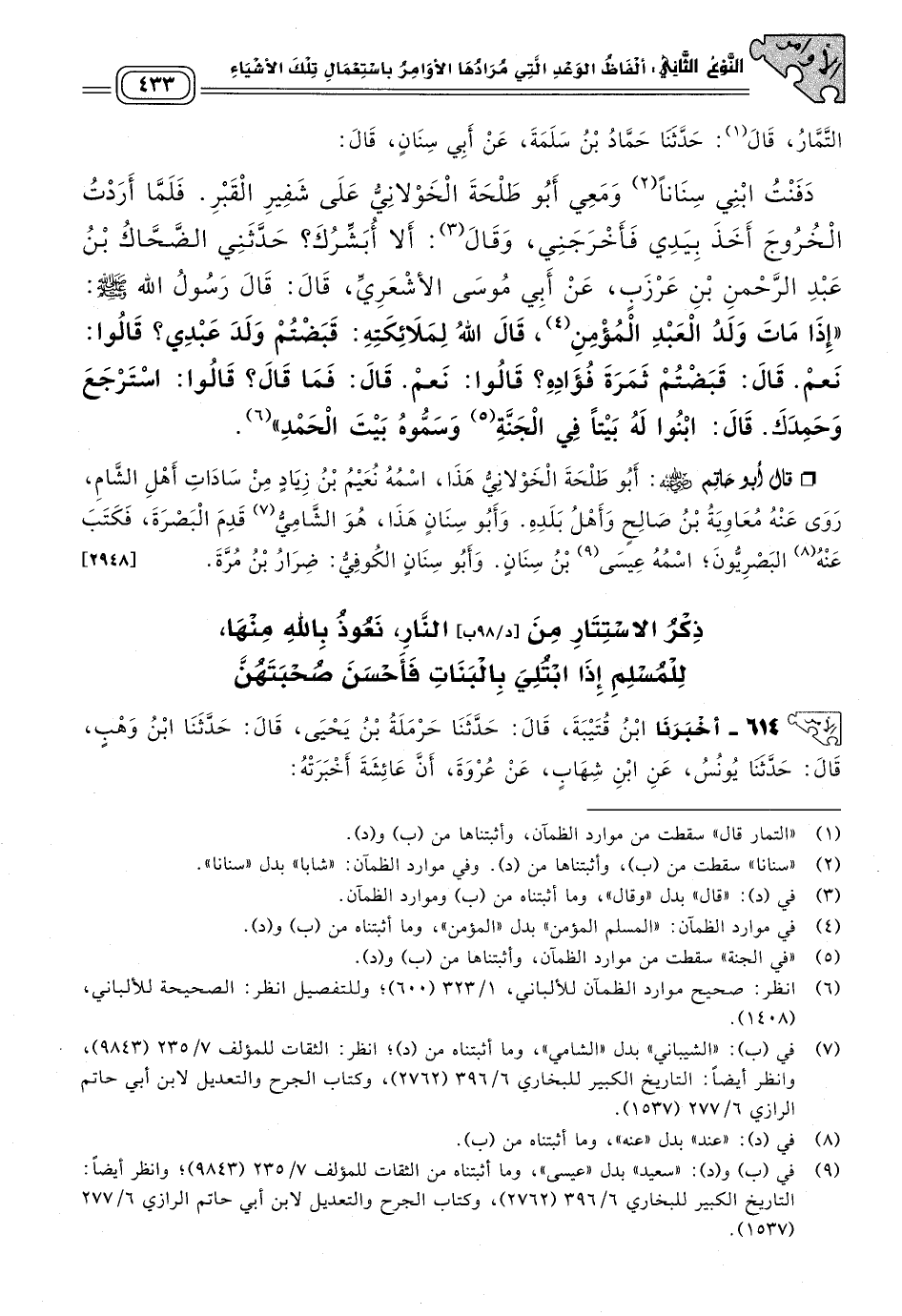 ذِكْرُ الاِسْتِتَارِ مِنَ النَّارِ نَعُوذُ بِاللهِ مِنْهَا لِلْمُسْلِمِ، إِذَا ابْتُلِيَ بِالْبَنَاتِ فَأَحْسَنَ صُحْبَتَهُنَّ.