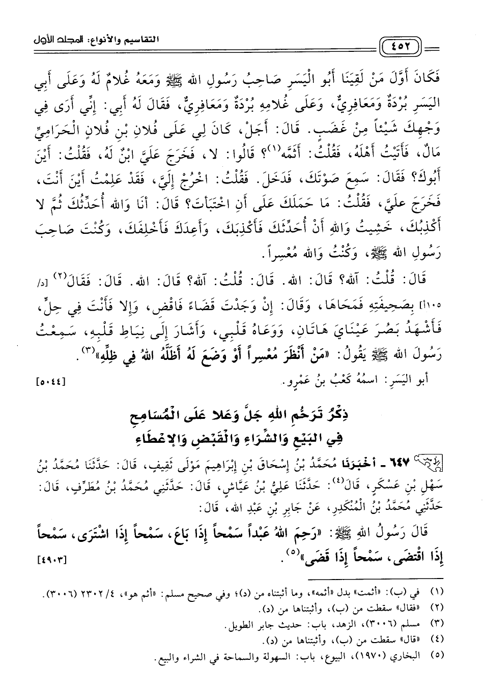 أَبُو الْيَسَرِ: اسْمُهُ كَعْبُ بْنُ عَمْرٍو. [٥٠٤٤]