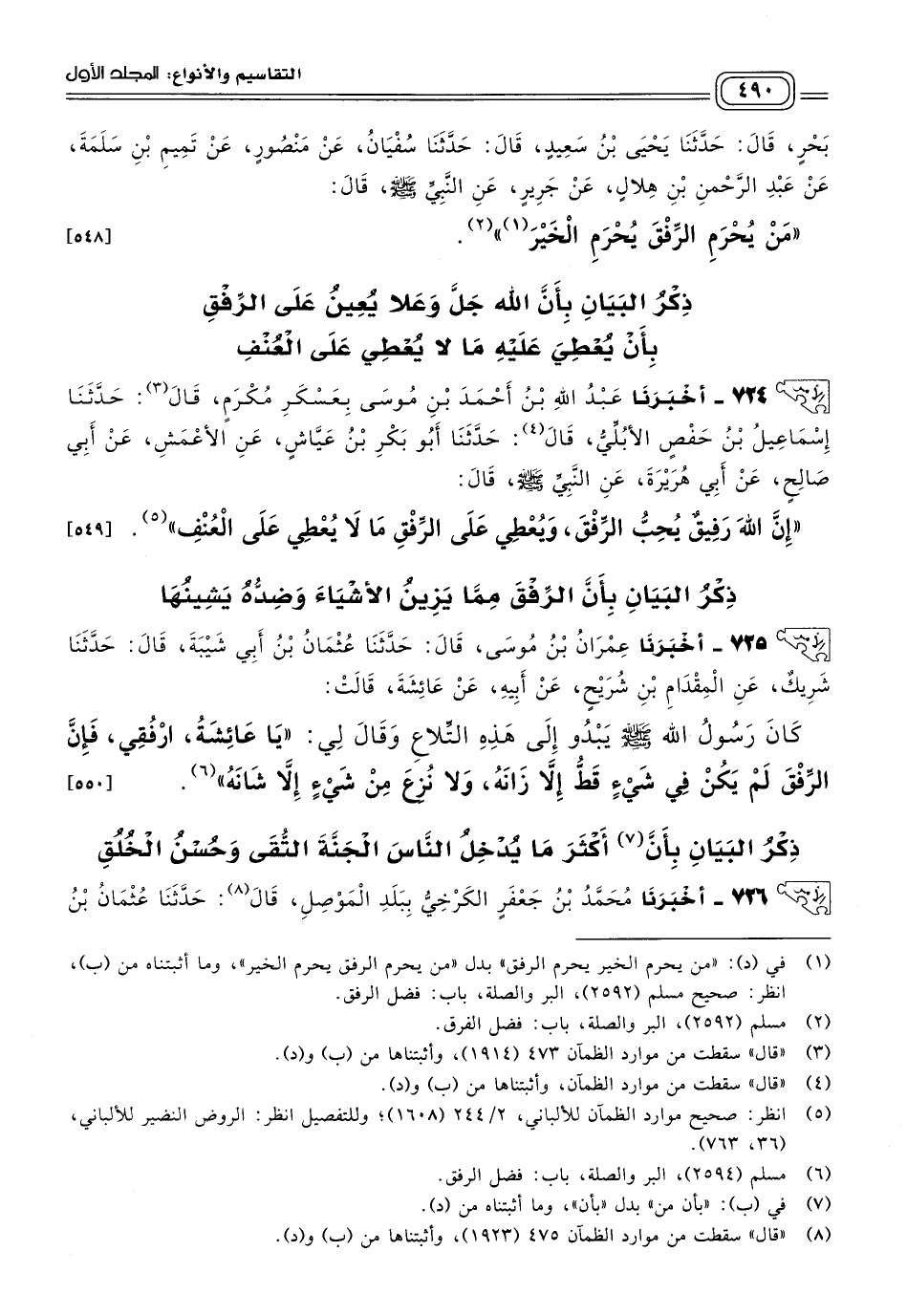 ذِكْرُ الْبَيَانِ بِأَنَّ اللهَ جَلَّ وَعَلَا يُعِينُ عَلَى الرِّفْقِ بِأَنْ يُعْطِي عَلَيْهِ مَا لَا يُعْطِي عَلَى الْعُنْفِ.