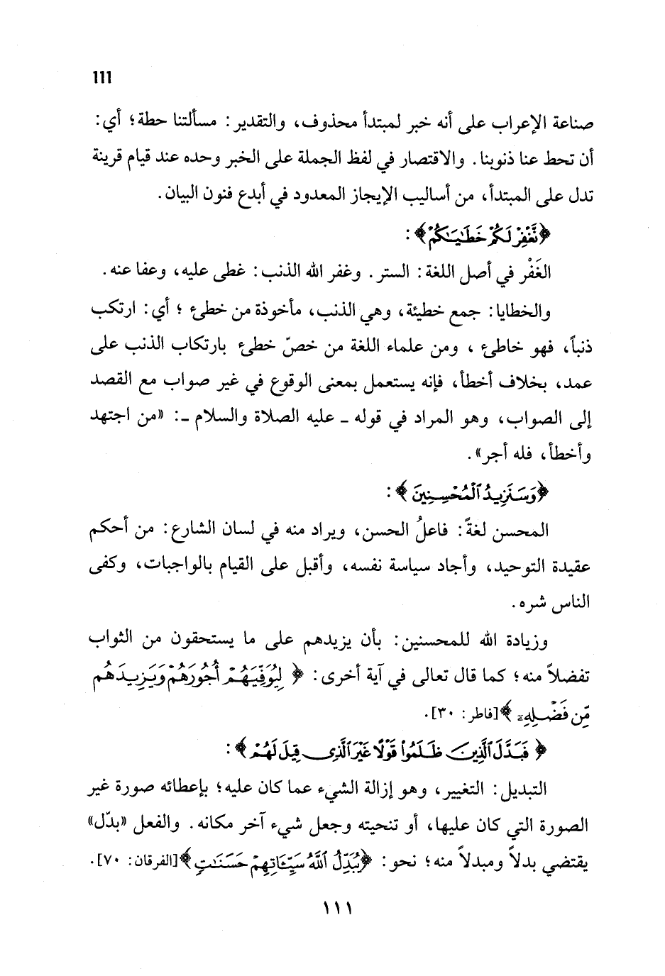 وزيادة الله للمحسنين: بأن يزيدهم على ما يستحقون من الثواب تفضلاً منه؛ كما قال تعالى في آية أخرى: {لِيُوَفِّيَهُمْ أُجُورَهُمْ وَيَزِيدَهُمْ مِنْ فَضْلِهِ} [فاطر: 30].