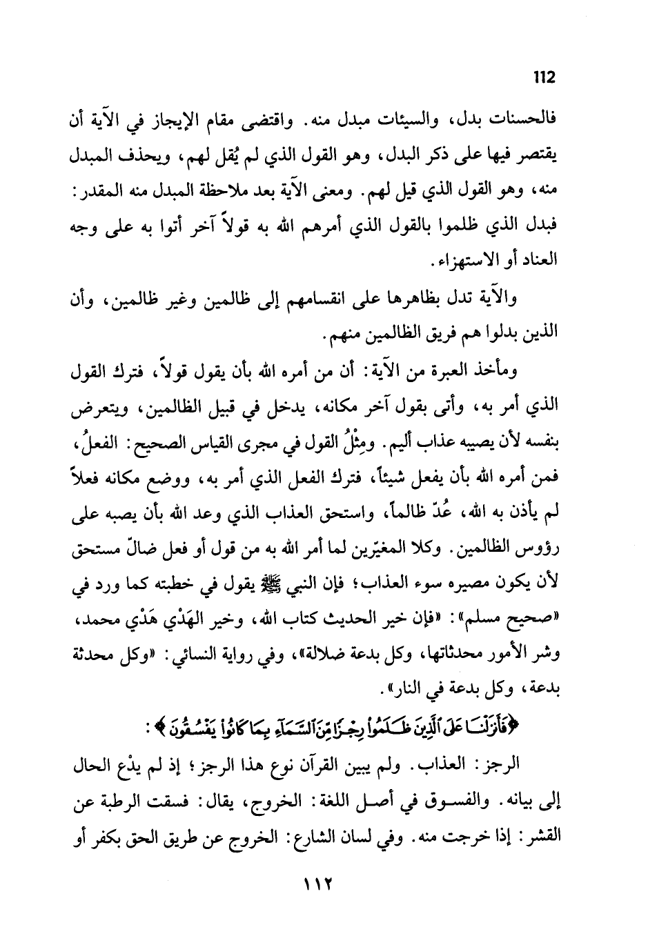 {فَأَنْزَلْنَا عَلَى الَّذِينَ ظَلَمُوا رِجْزًا مِنَ السَّمَاءِ بِمَا كَانُوا يَفْسُقُونَ}: