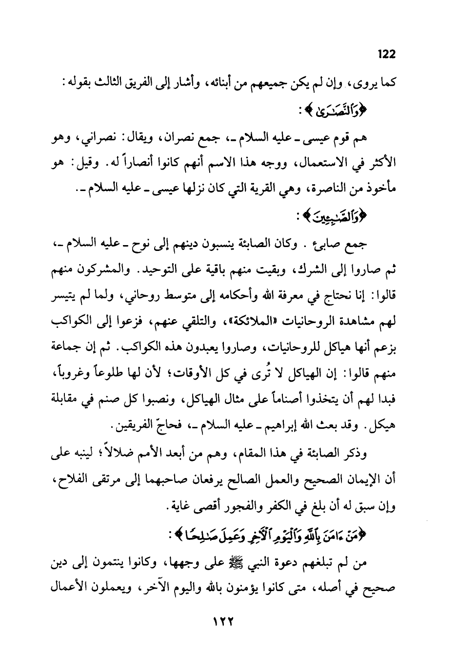 وذكر الصابئة في هذا المقام، وهم من أبعد الأمم ضلالاً؛ لينبه على أن الإيمان الصحيح والعمل الصالح يرفعان صاحبهما إلى مرتقى الفلاح، وإن سبق له أن بلغ في الكفر والفجور أقصى غاية.