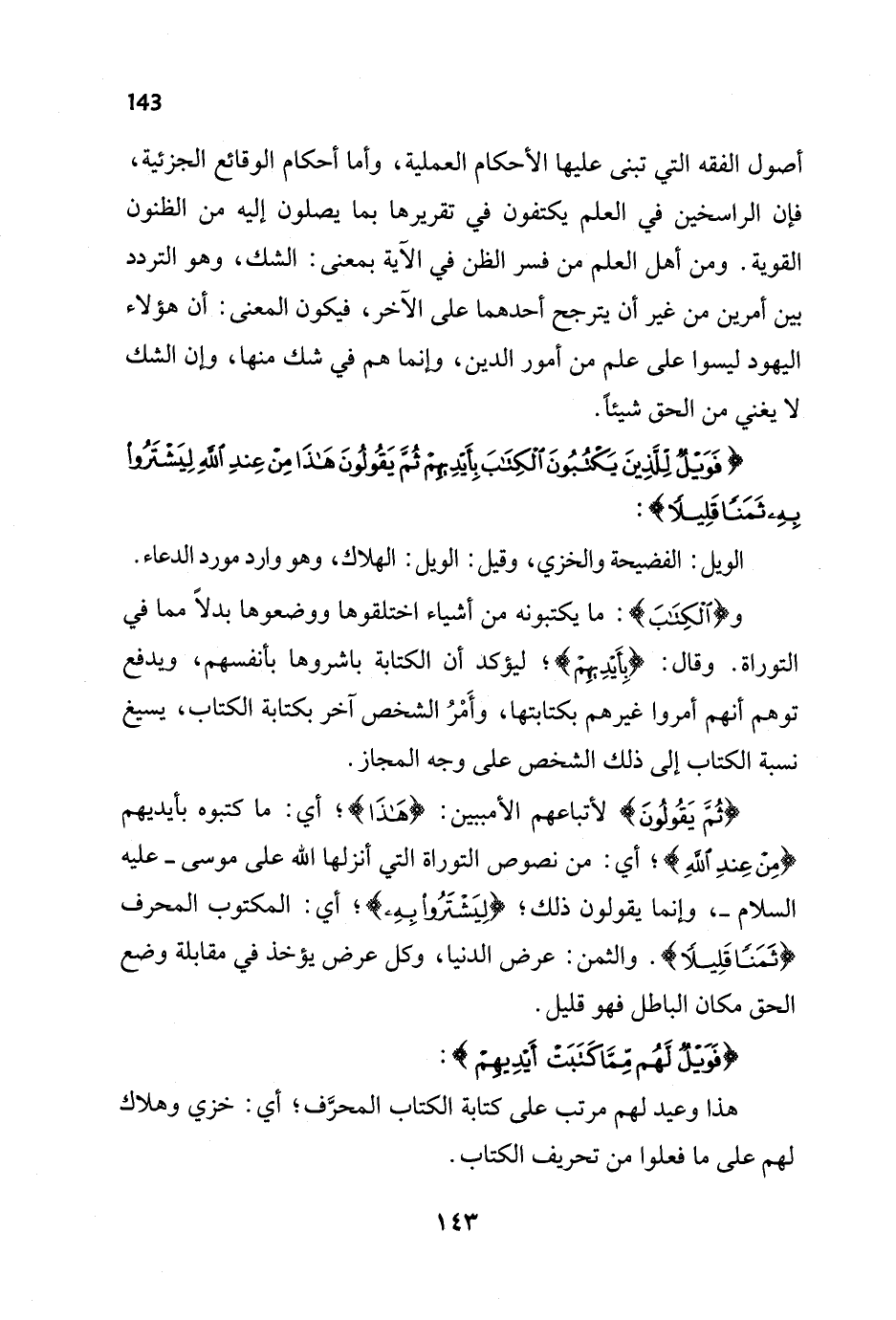 {فَوَيْلٌ لِلَّذِينَ يَكْتُبُونَ الْكِتَابَ بِأَيْدِيهِمْ ثُمَّ يَقُولُونَ هَذَا مِنْ عِنْدِ اللَّهِ لِيَشْتَرُوا بِهِ ثَمَنًا قَلِيلًا}: