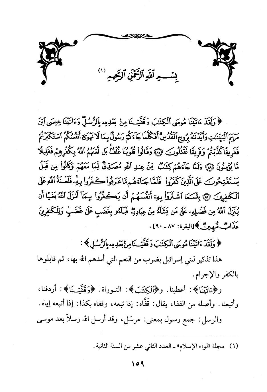 {وَلَقَدْ آتَيْنَا مُوسَى الْكِتَابَ وَقَفَّيْنَا مِنْ بَعْدِهِ بِالرُّسُلِ}: