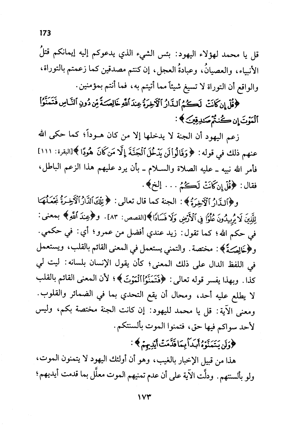 {قُلْ إِنْ كَانَتْ لَكُمُ الدَّارُ الْآخِرَةُ عِنْدَ اللَّهِ خَالِصَةً مِنْ دُونِ النَّاسِ فَتَمَنَّوُا الْمَوْتَ إِنْ كُنْتُمْ صَادِقِينَ}: